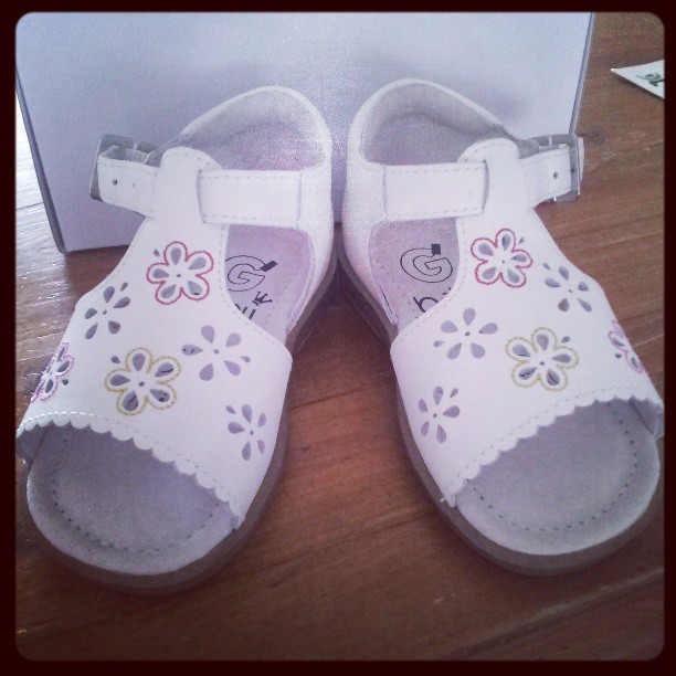 - On a réussi à trouver les chaussures d’été « pour tous les jours » , au bout de 2 heures de recherche… Mademoiselle a des pieds potelés mais fins sur les côtés, à part les marques (Jacadi, GBB, catimini…) c’est dur de la chausser « pas cher »! Heureusement nous avons trouvé notre bonheur chez Gémo, la dernière paire nous attendait et c’était la taille de Liloute !