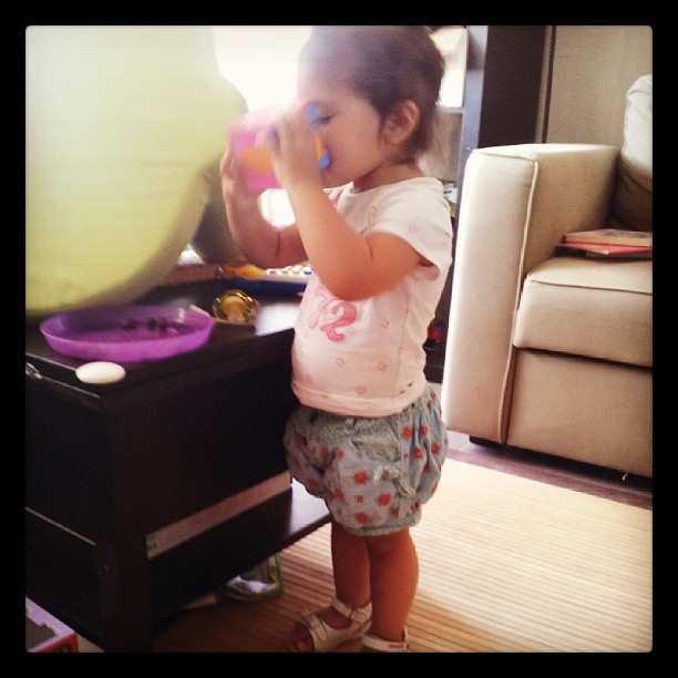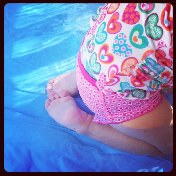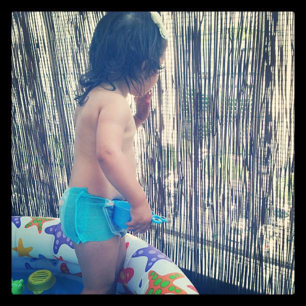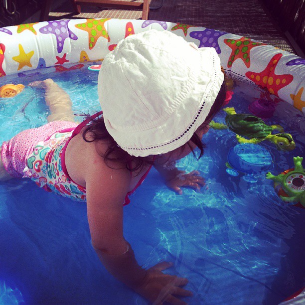 Encore une semaine sous le soleil ! Liloute a passé ses derniers jours de garde chez la nounou, que nous avons quittée mercredi. Elle a beaucoup profité de la piscine sur le balcon, et comme je l’ai avec moi 24h/24, je vois encore plus son évolution vers le stade « petite fille » !