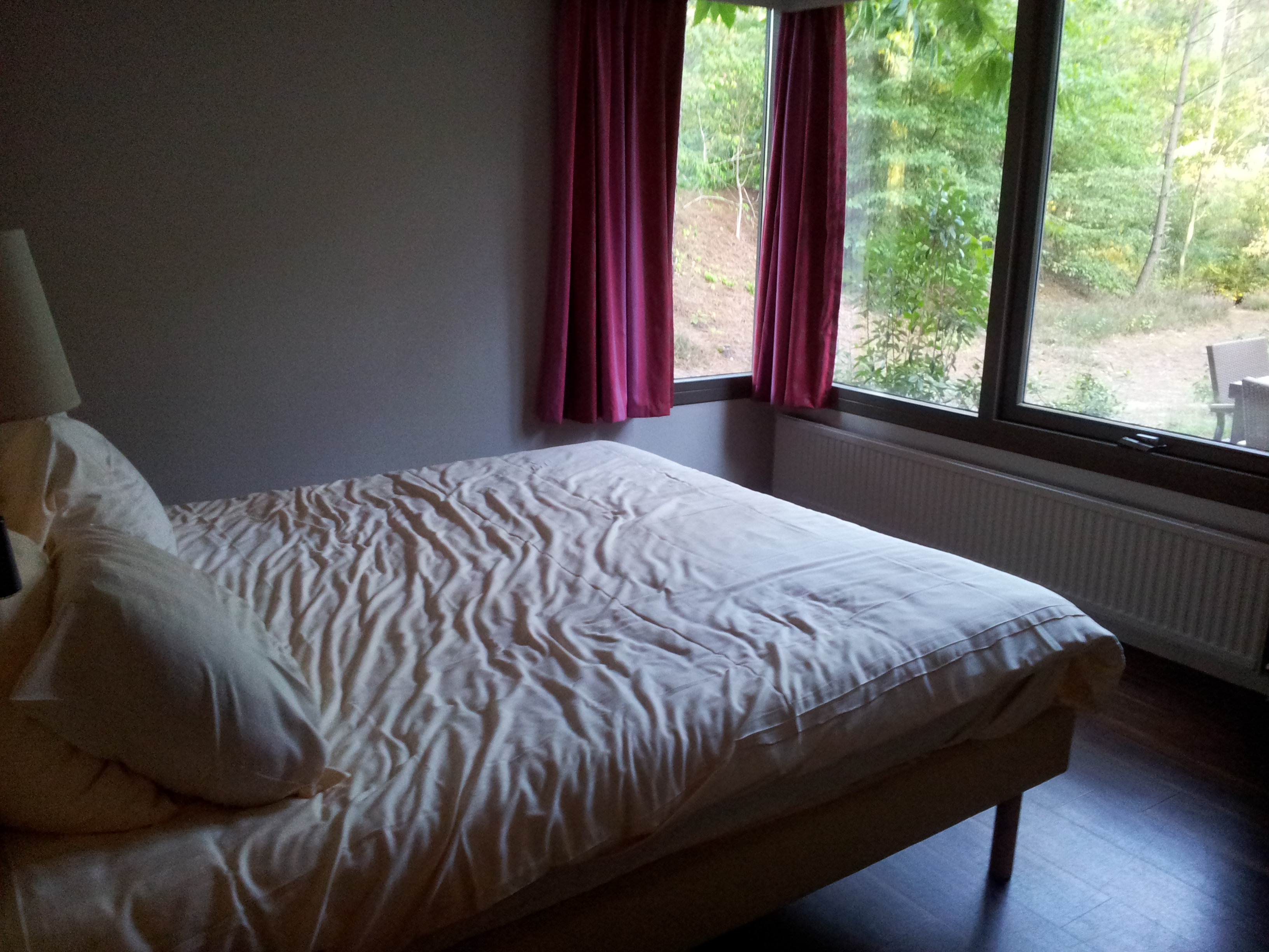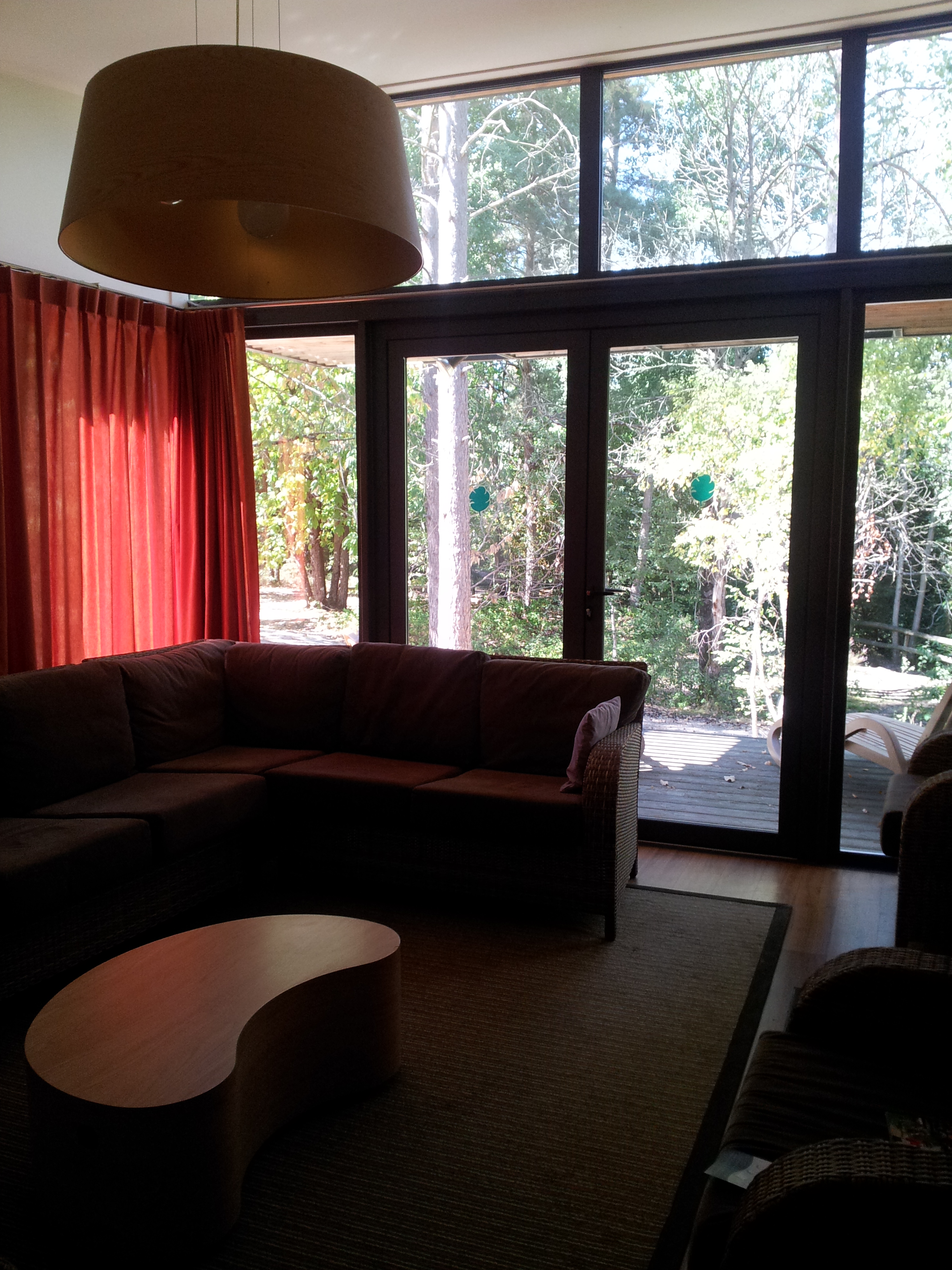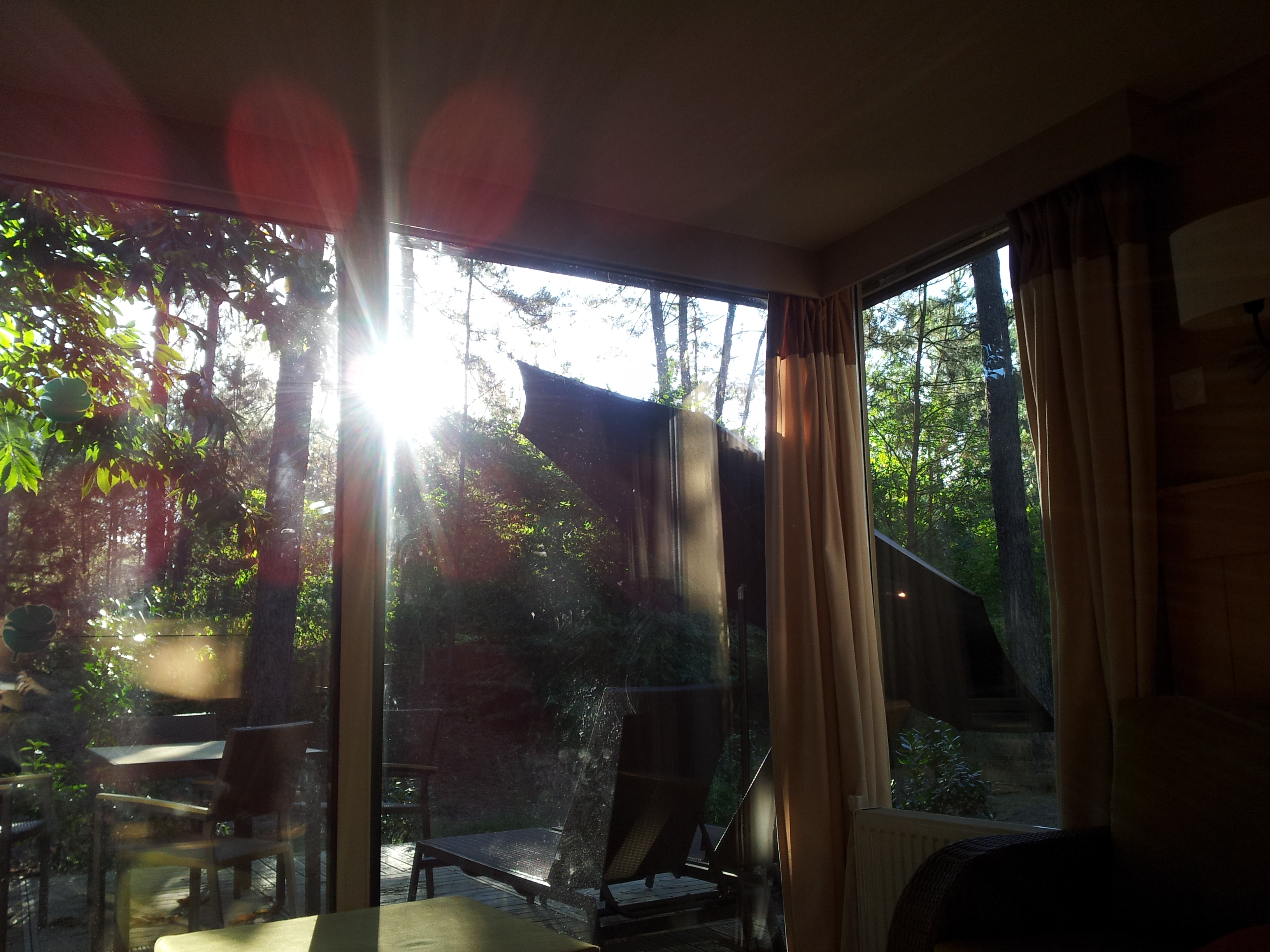 Une immense terrasse en bois borde tout le cottage et donne directement sur un bois très tranquille. On voit à peine les voisins… Un décor de rêve qui nous a vite fait oublier la déconvenue du début…