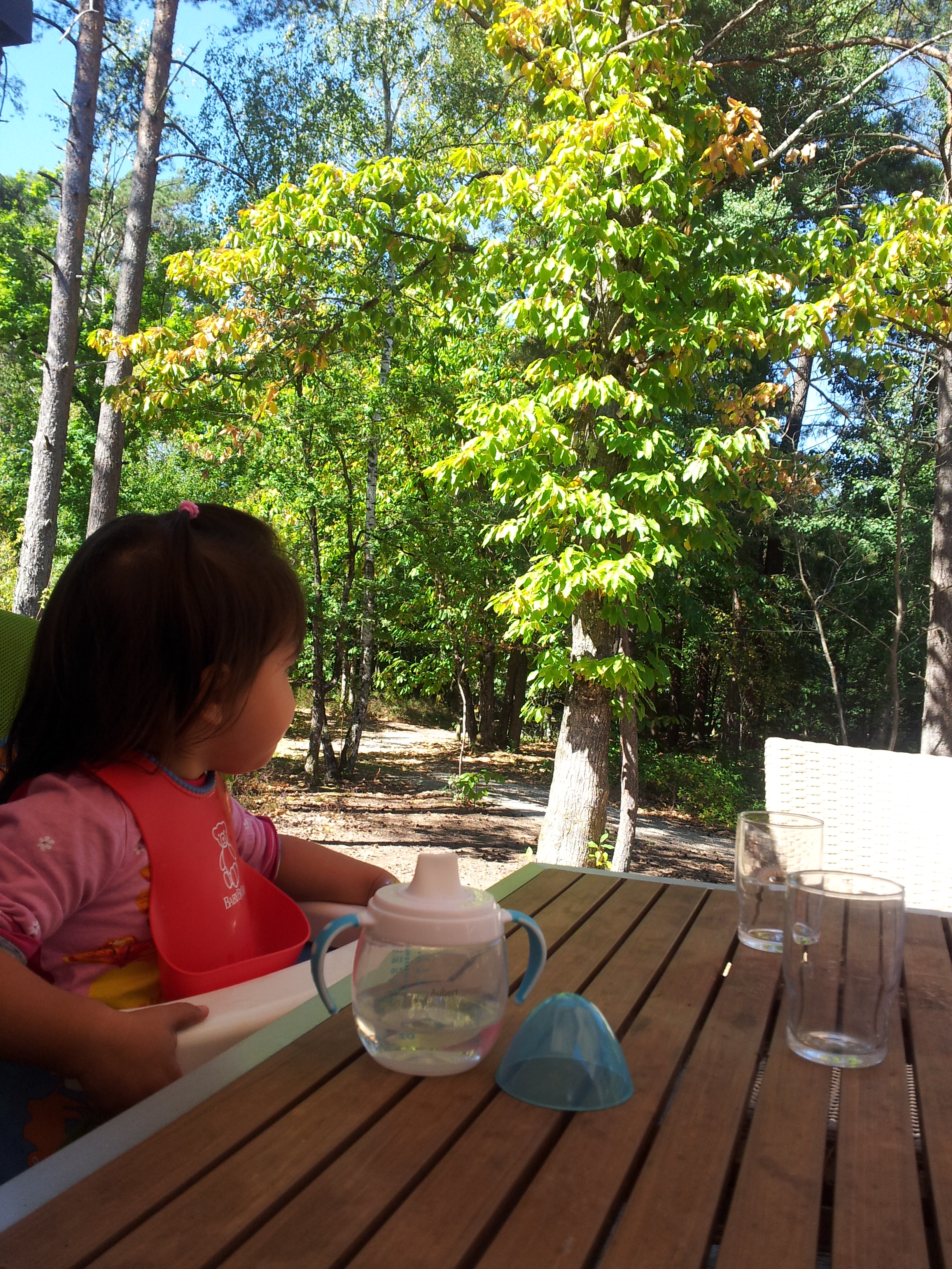 Premier arrêt marqué à 10 heures pour le café, changer bébé, deuxième à midi sur une aire avec coin pique nique et jeux pour enfants (comment les faire remonter dans la voiture après ça?) La dernière heure a été un peu rude, mais la tablette et ses dessins animés nous ont bien sauvé la mise…