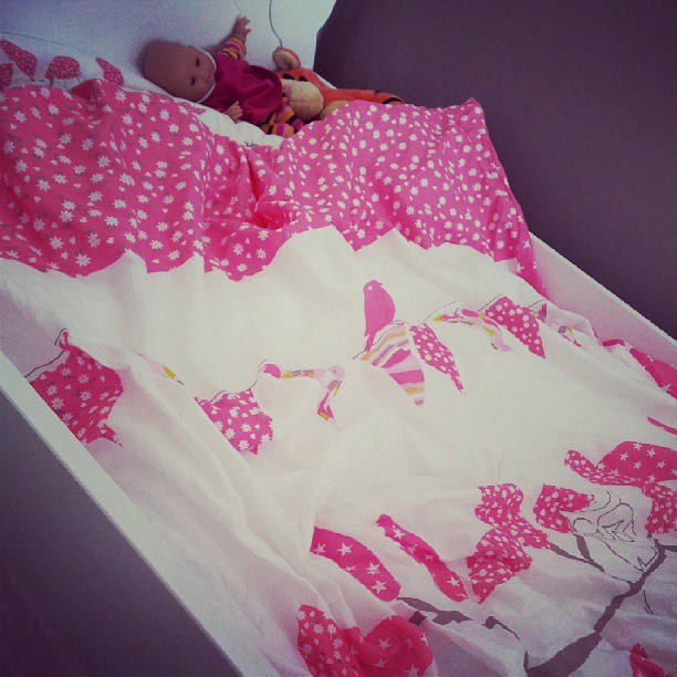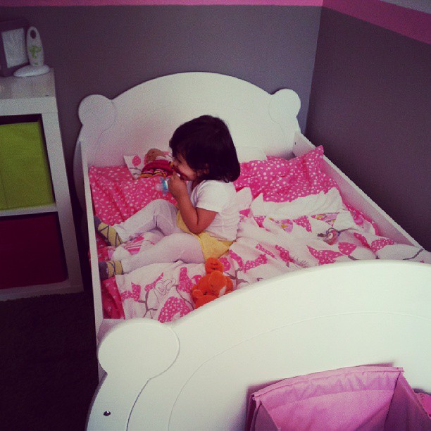 - Et on a installé son nouveau lit ! Dur pour maman de dire au revoir au lit de bébé… Mais elle, elle l’adore son lit de grande !