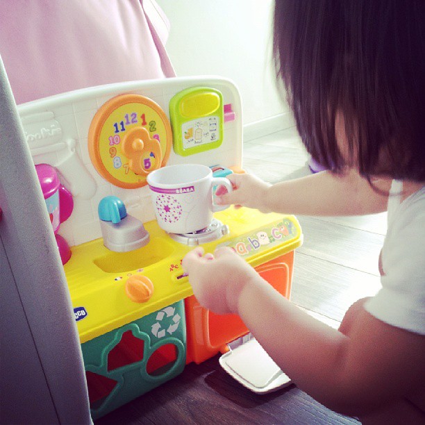 - Sa mini cuisine bilingue rejoindra bientôt ses jouets de bébé, pour faire de la place pour le grand modèle qu’elle recevra vendredi pour son anniversaire.