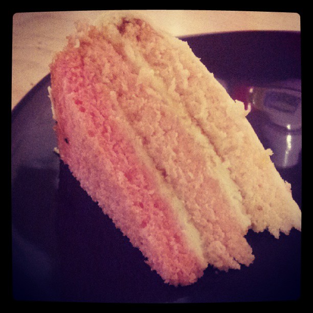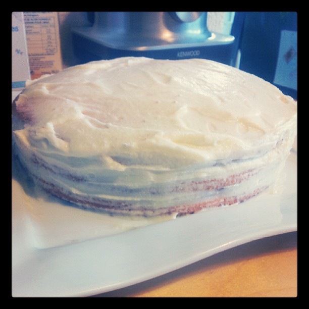 - L’intérieur du gâteau. Je n’ai pas assez forcé sur les colorants !