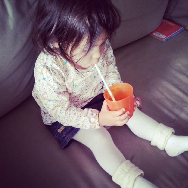 - Miss S. a appris à boire à la paille, maintenant elle veut l’utiliser pour tout !