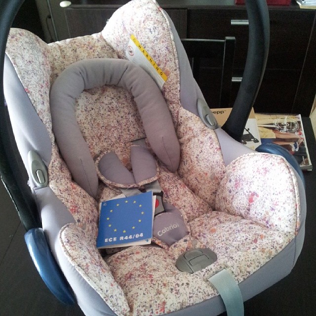 - Encore un colis qui m’a mis en joie : le cosy de Miniloute ! On ne le voit pas sur la photo mais j’avais aussi pris des adaptateurs pour ma Nuna Pepp. Après des mois d’hésitation j’ai jeté mon dévolu sur un maxicosi (les coques compatibles sont assez nombreuses en dehors de la Pipa de Nuna : Pebble de bébéconfort, Cabriofix et Citi de Maxicosi ainsi que les coques Aton. J’étais partie sur un Aton 2 au vu des supers résultats crash tests et de son prix imbattable… Mais j’ai craqué sur le coloris de ce cabriofix (plutot bien noté avec sa base isofix que je n’ai pas encore…)…