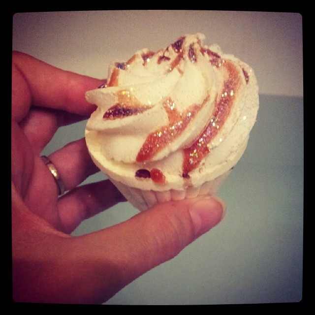 - Détail d’un cupcake effervescent pour le bain, parfum pomme d’amour…