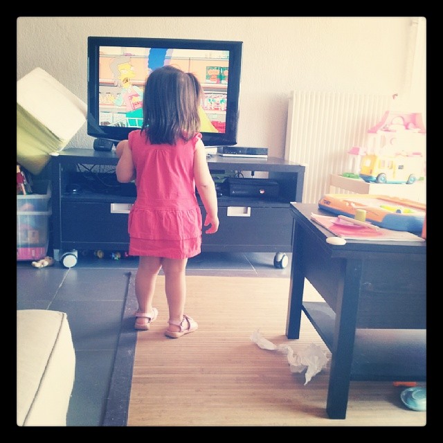 - Liloute devant les Simpsons, à l’heure de la sieste… Les couchers sont redevenus un peu durs avec l’avancement de la grossesse, ça aussi il faudrait que je vous en parle…
