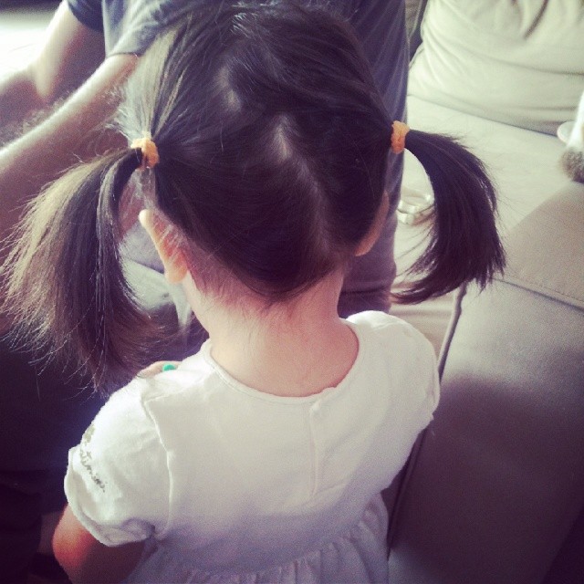 - Liloute et ses couettes, qu’on a du refaire plusieurs fois dans la journée, merci les cheveux fins de maman !