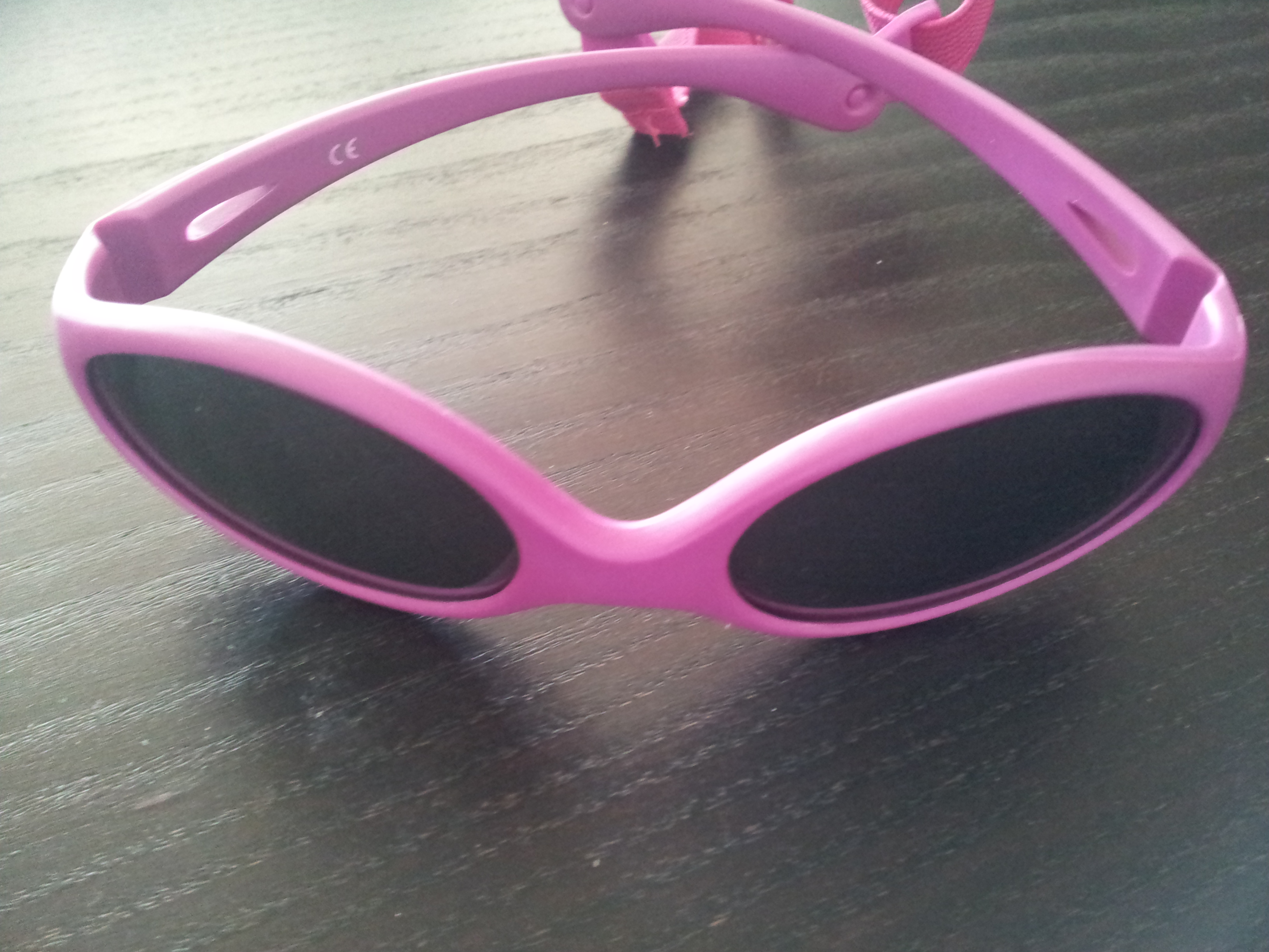 Notre Liloute ayant déjà 32 mois, je me pose tout de même la question de l’utilisation chez un enfant plus petit. Nous serrons le lien au maximum pour que les lunettes tiennent en place et la miss a pourtant un tour de tête tout à fait dans les normes pour un grand bébé de presque 3 ans. Je ne suis pas sûre que sur un enfant d’un an le tout puisse se serrer d’avantage, mais je suis contente d’avoir une paire adaptée pour la catégorie « plus tout à fait bébé mais pas encore enfant »