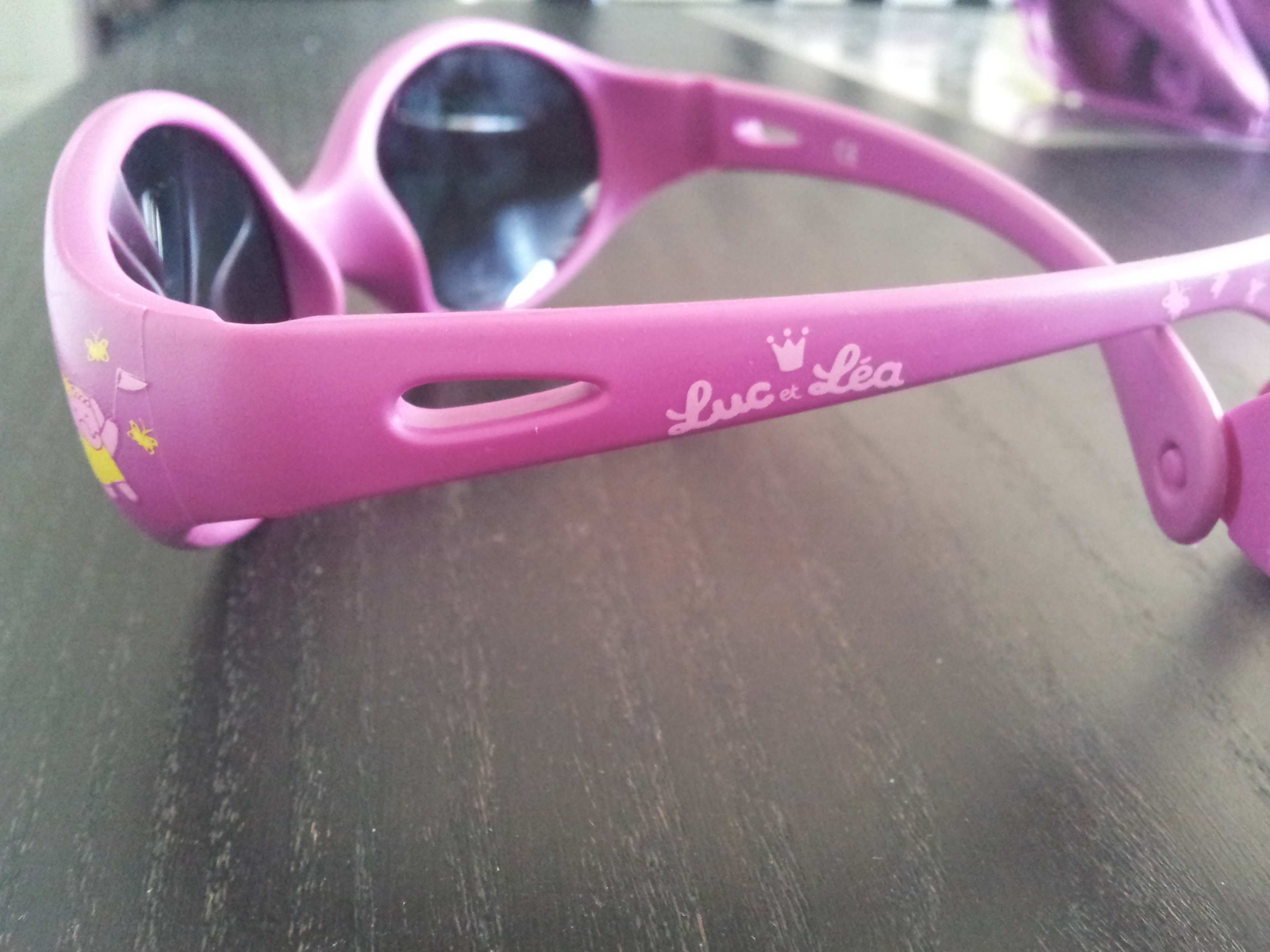 Jusqu’ici, nous utilisions toujours les lunettes spécial bébé de la demoiselle, même si elles devenaient sérieusement petites et que l’élastique d’attache avait tendance à se détacher tout seul… Alors, quand on m’a proposé de donner mon avis sur des solaires plus adaptées à l’âge de Liloute, qui plus est par Luc et Léa (une marque que j’affectionne pour ses jolis biberons et tétines), je n’ai pas hésité.