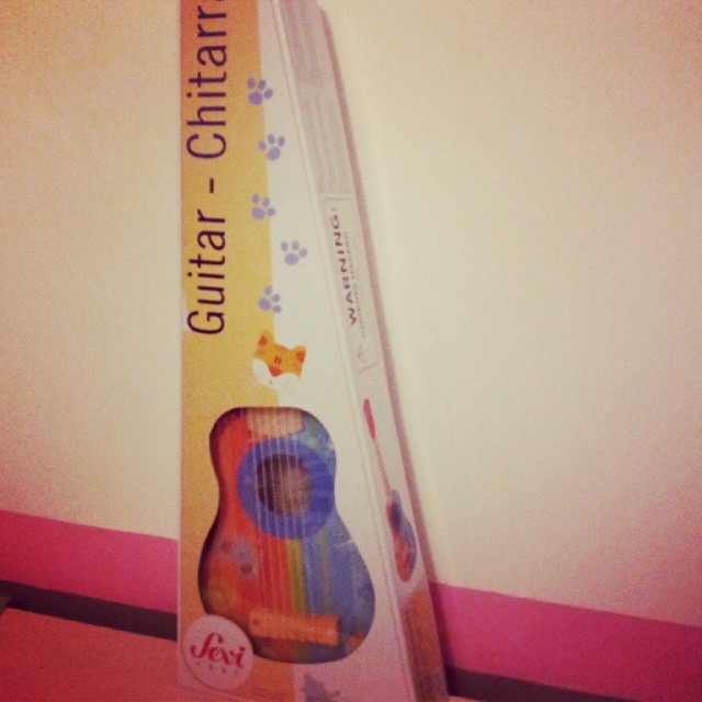 Si vous nous suivez sur instagram, vous devez savoir que j’ai d’ailleurs eu la chance de recevoir une jolie guitare en bois pour miss S. Elle qui en voulait une depuis longtemps était ravie de la découvrir en rentrant de la crèche et joue avec tous les jours depuis. Certes, il faut souvent la ré-accorder car elle tire assez fort sur les cordes, notre salon est devenu une salle de concert acoustique, mais c’est un plaisir de voir comme elle adore ce jouet.