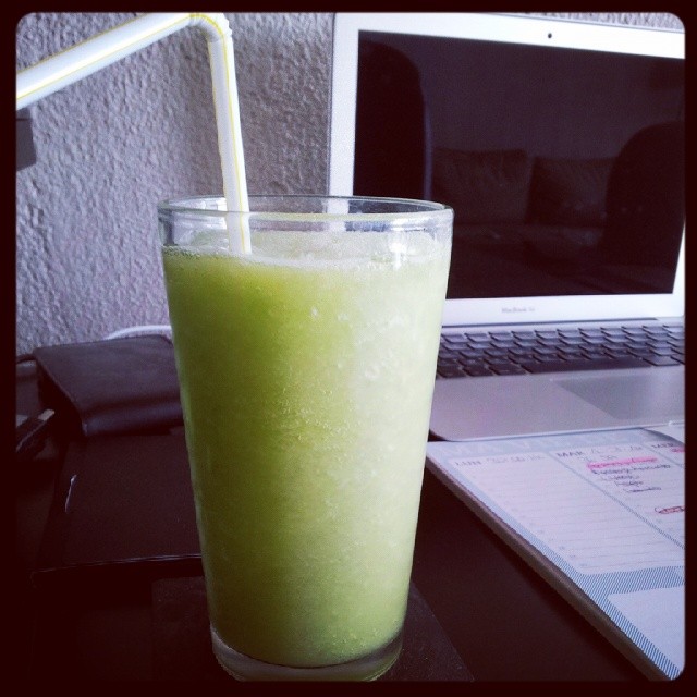 7. On finit cette semaine caniculaire et orageuse par un smoothie concombre/citron… Etonnant et rafraichissant !