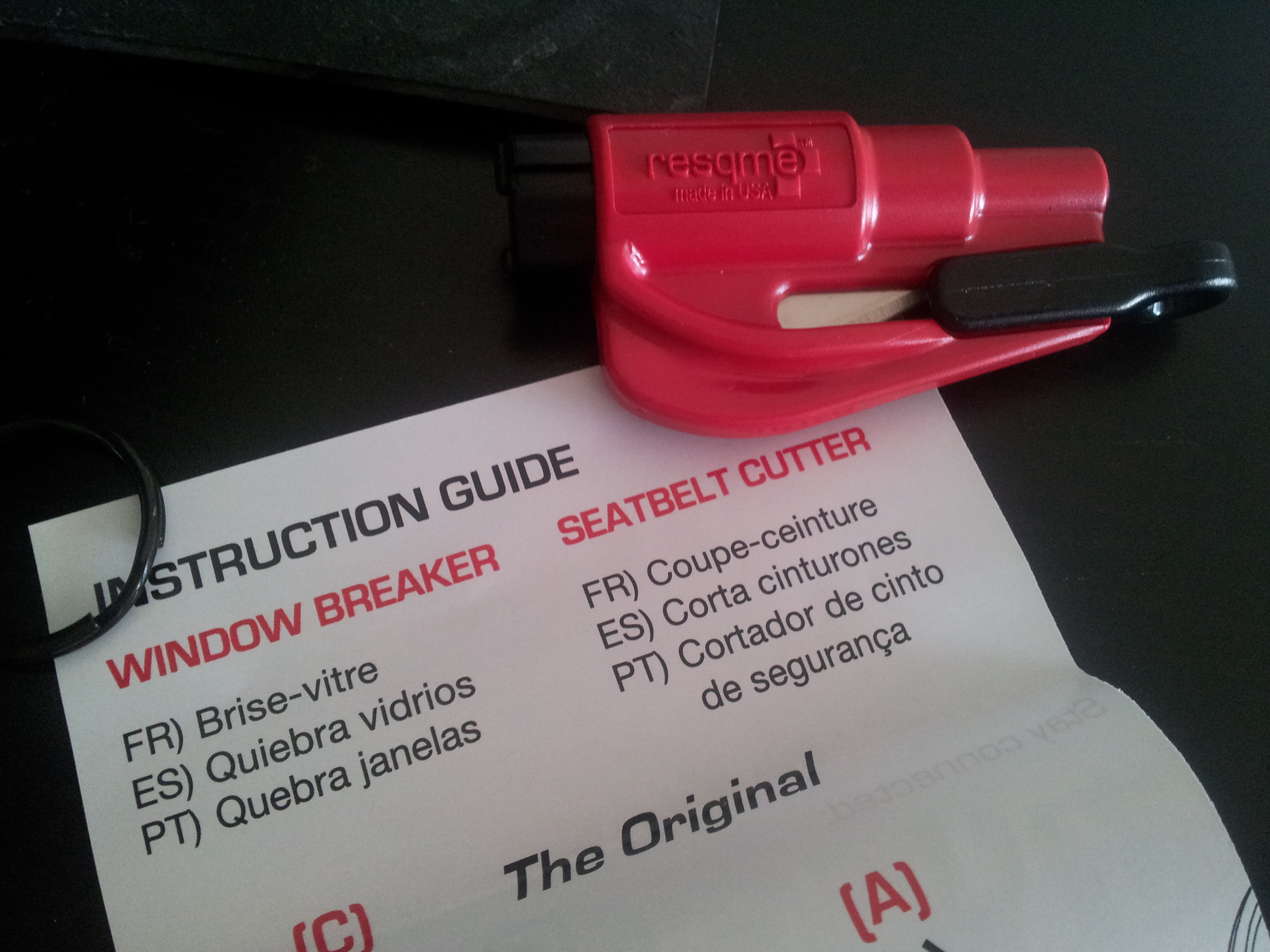 J’ai eu la chance d’en recevoir un et j’ai pu constater que le Resqme est très compact, parfaitement adapté pour se fixer au porte clés et être emporté partout. Il combine une lame coupe ceinture et un mini marteau brise vitre qui peuvent tous deux être utilisés plusieurs fois. Tout est très bien expliqué dans la notice fournie, l’utilisation a l’air simple, rapide et efficace.