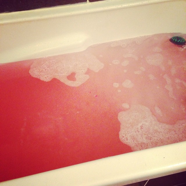 - Bain du soir, bonsoir… La boule de bain « Bonbon » de Bains Magiques tire franchement vers le rouge, c’est un peu flippant quand même !