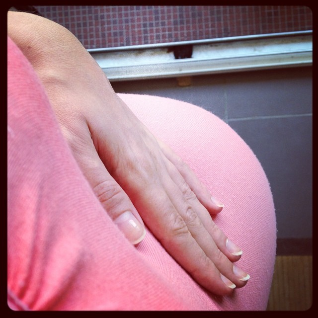Non j’ai eu quelques contractions mais c’est tout 😉 Quand elle voudra… :p