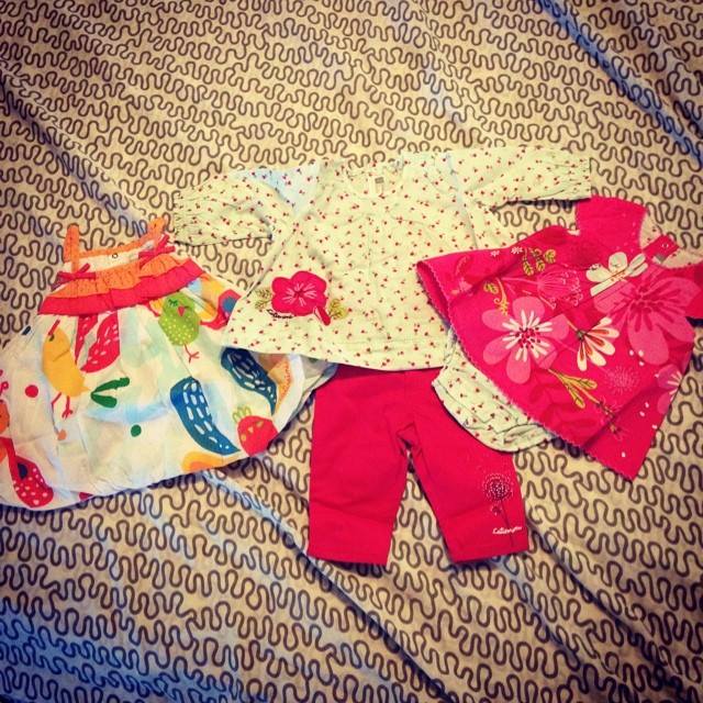 - Réception des colis de fin de soldes ! Avec les -60% et les pourcentages supplémentaires, on se fait plaisir chez Catimini pour Liloute : 2 robes dont une qu’elle a porté hier à un mariage… parfaites ! Mais va falloir passer au 5 ans chez eux…