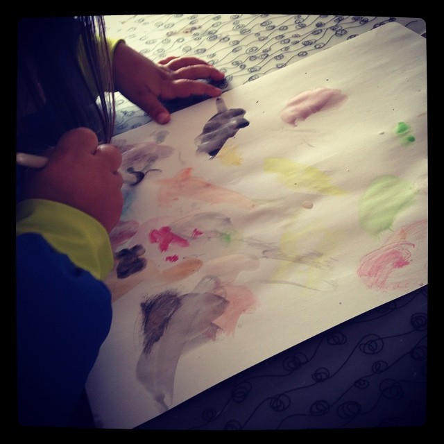 - Liloute, faute de sorties, multiplie les activités manuelles et les jeux à la maison. Hier, c’était peinture à l’eau !