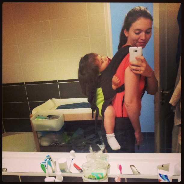 Cette étape là a toujours été un peu présente tout au long de notre parcours de portage avec Miniloute. Dès 2 mois, quand elle a commencé à s’énerver en écharpe et à vouloir élargir son champ de vision, avec la position nouveau né qui n’est autre qu’une réduction de l’assise du préformé. Elle a très vite su écarter ses jambes suffisamment pour être porté en préformé « normal », heureusement, car elle préférait désormais cela à l’écharpe qui la confinait trop. C’était plus aéré et elle avait une plus grande liberté de mouvement. Pour moi, c’était moins confortable et moins « cocon » que l’écharpe, mais elle était calme dedans et s’y endormait à coup sur en balade. De plus, c’était facile à glisser sous le panier de la poussette… Car à chaque balade avec notre Nuna Pepp, bébé finissait par pleurer au bout d’une demi heure voire moins, et je l’installais alors dans le boba, mes courses dans la poussette devant moi… Depuis, on utilise très rarement la poussette et je me suis résignée, mais j’avoue que ce n’est pas pour me déplaire…