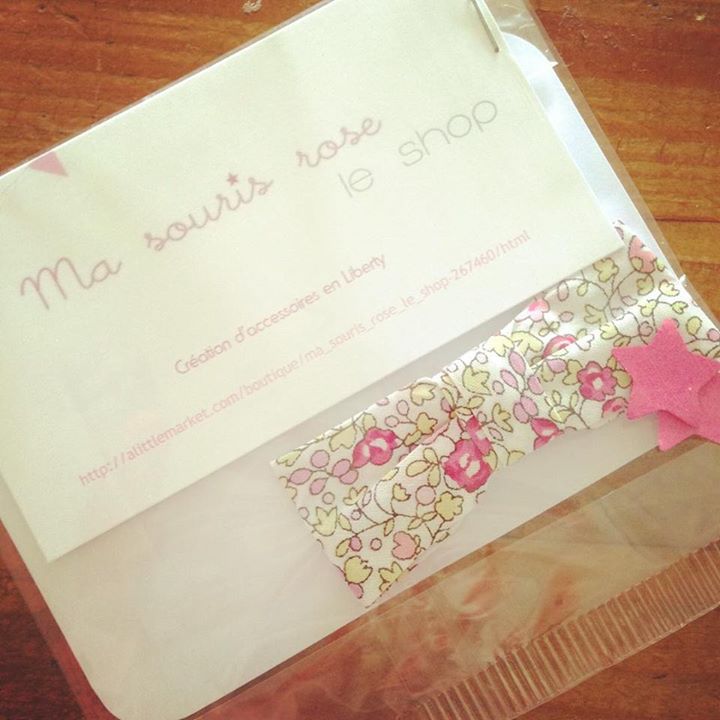 - J’ai commandé une ravissante barrette noeud liberty sur A Little Market chez Ma souris Rose , je suis fan ! L’occasion d’en mettre à Miniloute pour la première fois pour essayer, je regrette de ne pas avoir pris le résultat en photo, c’était trop mignon !