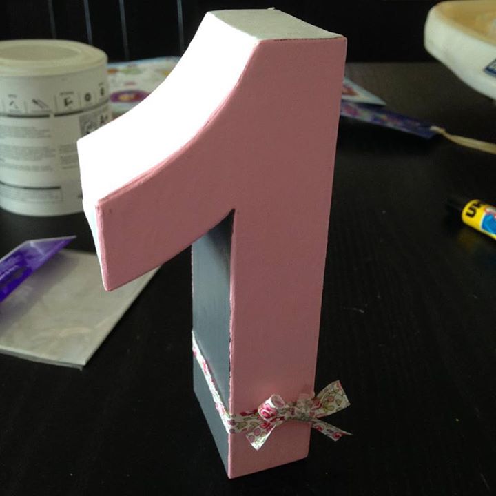 - Le chiffre 1 peint en rose gris et blanc, pour moi qui ne suis pas douée en peinture c’était un jeu d’enfant !