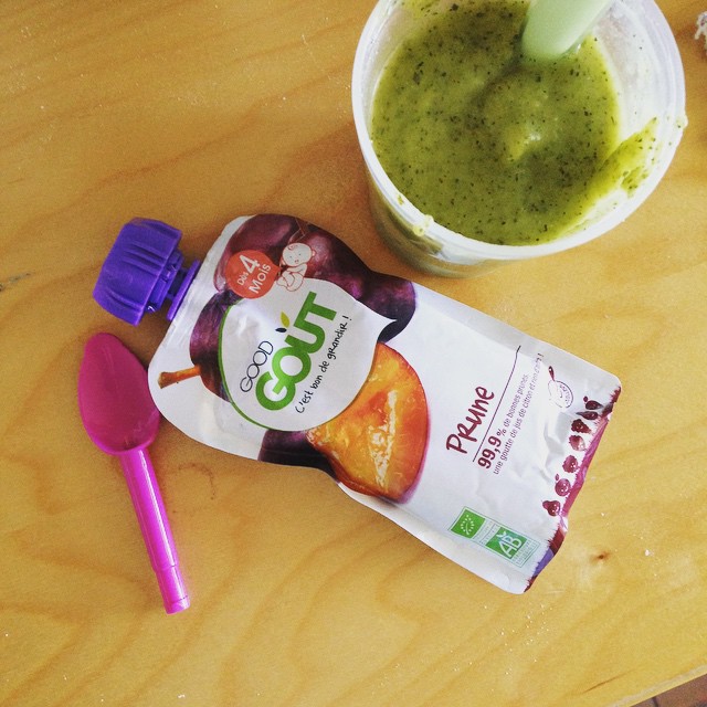 Pour ce qui est de la gourde Good Goût à la prune, ni Miniloute ni Liloute ne l’ont aimée, mais moi j’étais bien contente de la finir ! Il faut dire que la prune a un goût particulier, que j’adore personnellement mais pas toujours évident pour de jeunes enfants. J’ai également eu l’occasion de tester la mini gourde Little Green Pouch que j’ai trouvé très pratique avec son ouverture sur le dessus. Miniloute, elle, est sans doute un peu grande pour la mini contenance mais elle a tout de suite accroché, en fan de gourdes digne de ce nom !