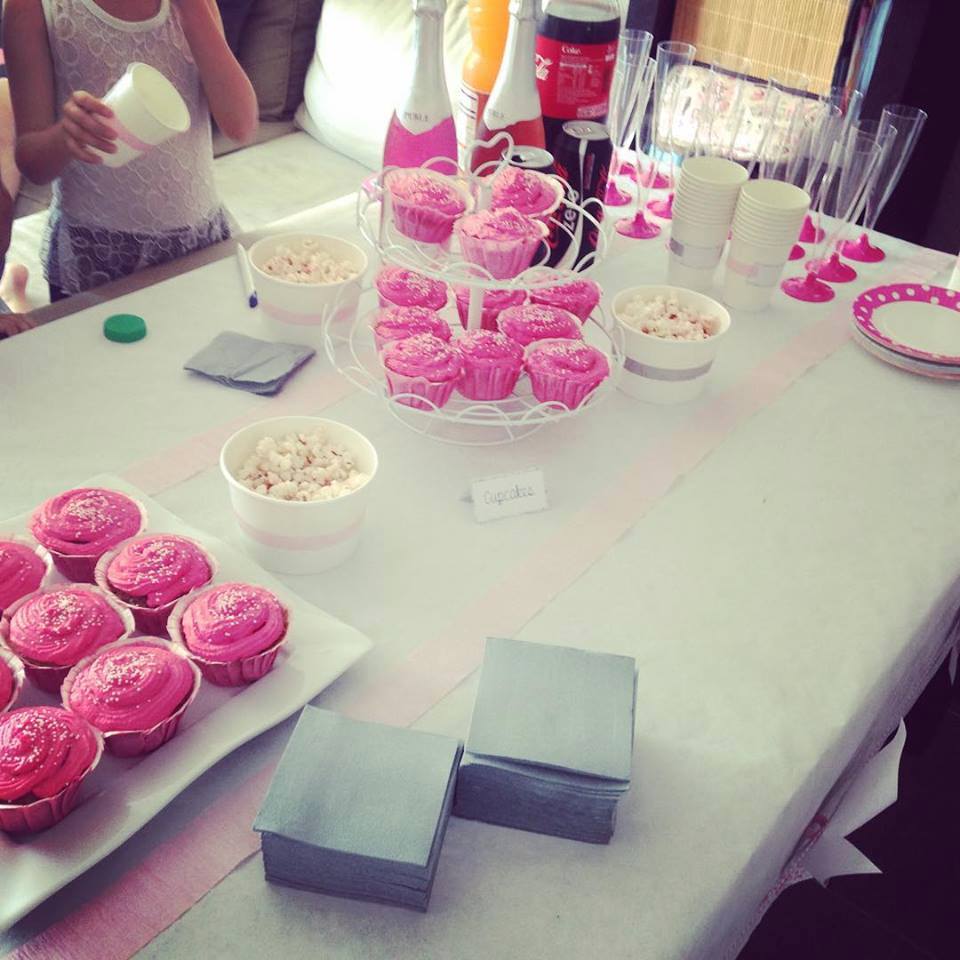 Les serviettes en papier petit format grises viennent de chez Casa, comme les pics à cake pops. Pour ces mêmes cake pops, j’ai recyclé des carrés de polystyrène pour les recouvrir de papier de soie et en faire des supports. Comme mon candy melt déjà fondu n’a jamais voulu refondre (par quel mystère, je ne sais pas) ils ont juste été enduits de mélange eau et sucre glace pour faire tenir les mini perles de sucre roses et blanches (merci JustCli ! 😉 ) Les caissettes Wilton rose viennent de chez Thema déco, le support à cupcakes a été acheté il y a 2 ans chez Casa et les coupes à champagne viennent de chez Babou. Tout le reste de la vaisselle (hormis les couverts de supermarché et les assiettes argent de chez Thema Déco) vient de chez Hema, une mine d’or si vous préparez un anniversaire pour des prix riquiqui (d’ailleurs, je suis en train de faire le stock pour les 4 ans de Liloute dans 2 mois…). Le glaçage des cupcakes a été réalisé comme d’habitude avec du mascarpone et du sucre glace puis teint en rose (j’ai eu la main lourde sur la couleur !) avec du gel Wilton. Toutes les pâtes de gâteaux ont d’ailleurs été préparées sans lait de vache en utilisant du lait d’amande et de la margarine sans lactose. Un petit changement qui n’a rien enlevé au goût des recettes que j’utilise d’habitude.