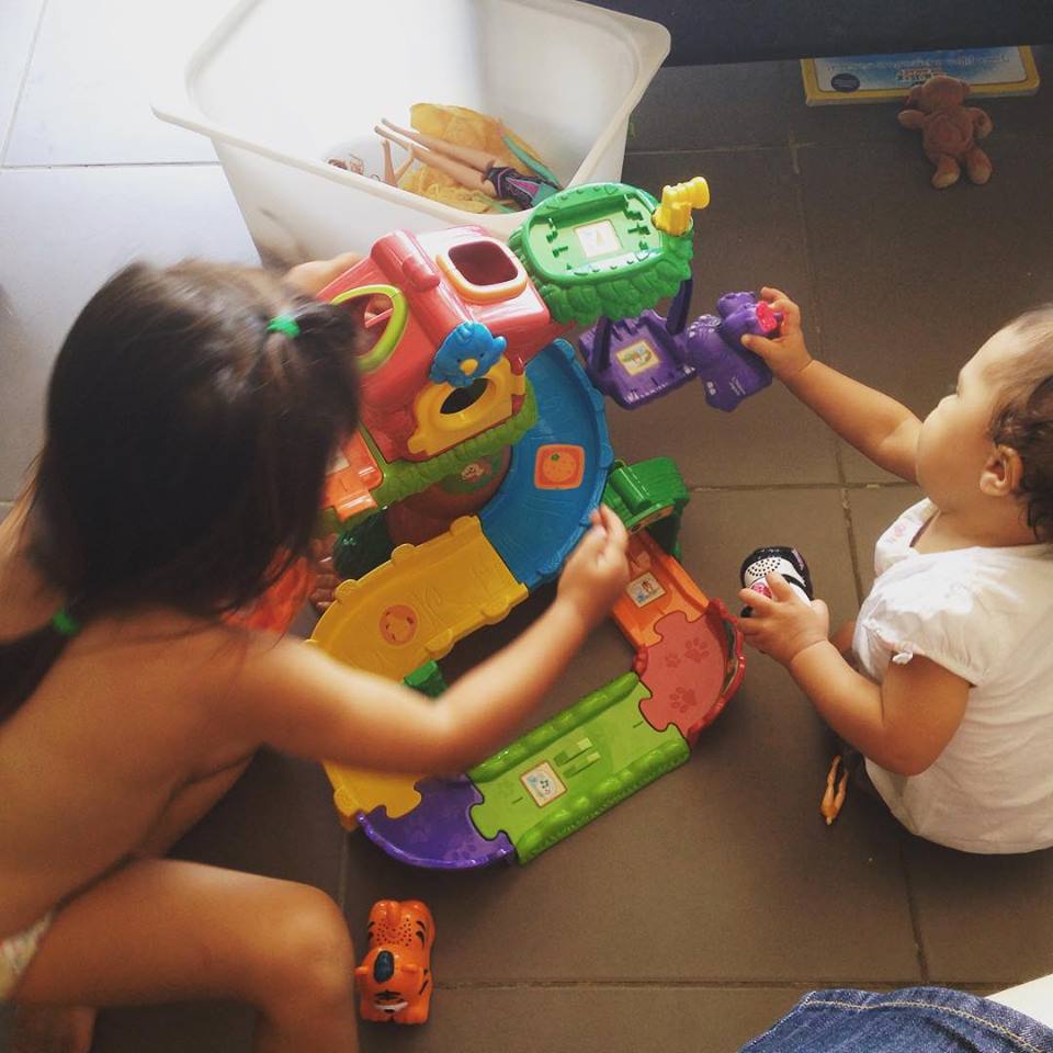 Après l’anniversaire, les cadeaux et jouets de mon bébé les occupent toutes les deux, ce qui fait qu’on peut se permettre des « journées pyjamas » (sauf pour moi le pyjama) où elles jouent, regardent les dessins animés (oui, je sais, bouuuuh), re-jouent ensemble (en ce moment ça commence vraiment, ouf !), l’une dort puis l’autre s’occupe parfois sans mon aide, et la journée passe. Quand on sort, on alterne les balades classiques pharmacie/boulangerie/poste/relais colis avec des sorties plus élaborées. De préférence avec les copines qui ont elles aussi des enfants à occuper ! Car comme il fait beau, mais qu’il a fait très chaud, dur de trouver des endroits climatisés baby friendly pour occuper petits et grands. Alors on a fait une fois l’aire de jeux avec les copains, le fast food dépanne bien aussi, et on a mangé deux fois au Ouimum’s avec une copine pendant que nos enfants s’amusaient. D’ailleurs, il faudra que je vous en parle plus longuement, car on y va assez souvent en ce moment (fin, pas exactement en ce moment, ils sont en vacances, mais vous avez compris !)