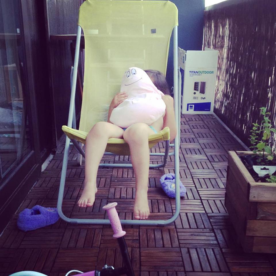 On n’a malheureusement pas la chance d’avoir un parc juste à côté de chez nous, ou alors il faut marcher et grimper une grande côte ou encore prendre le bus. On a bien essayé de se renseigner sur les horaires de la piscine municipale pas très loin qui était ouverte au mois d’Août mais… c’était fermé à chaque fois. Et la plage, à plus d’une heure de transports avec deux enfants en bas âge, non merci.