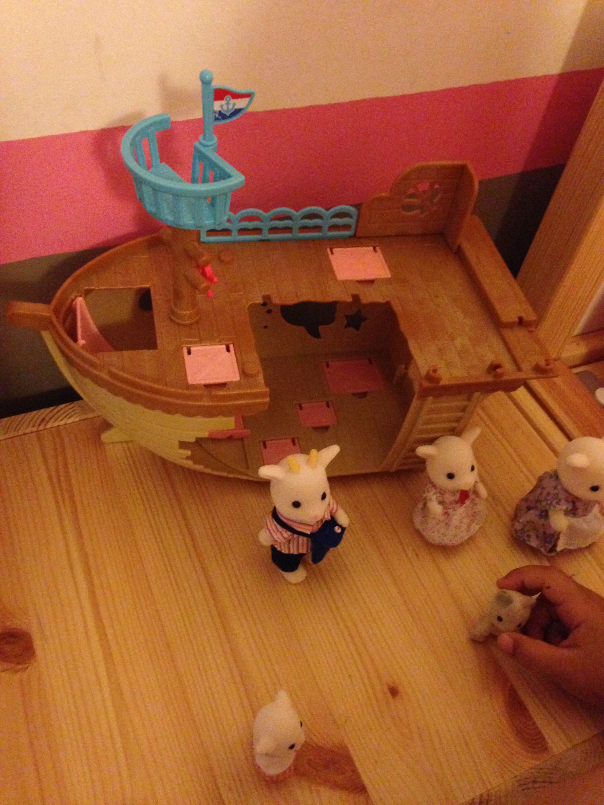 On voit d’ailleurs sur les photos qu’elle joue avec son bateau aux trésors en haut de l’escalier de sa chambre ! (sauf que maintenant, sa soeur y monte, donc là aussi c’est un peu rapé)