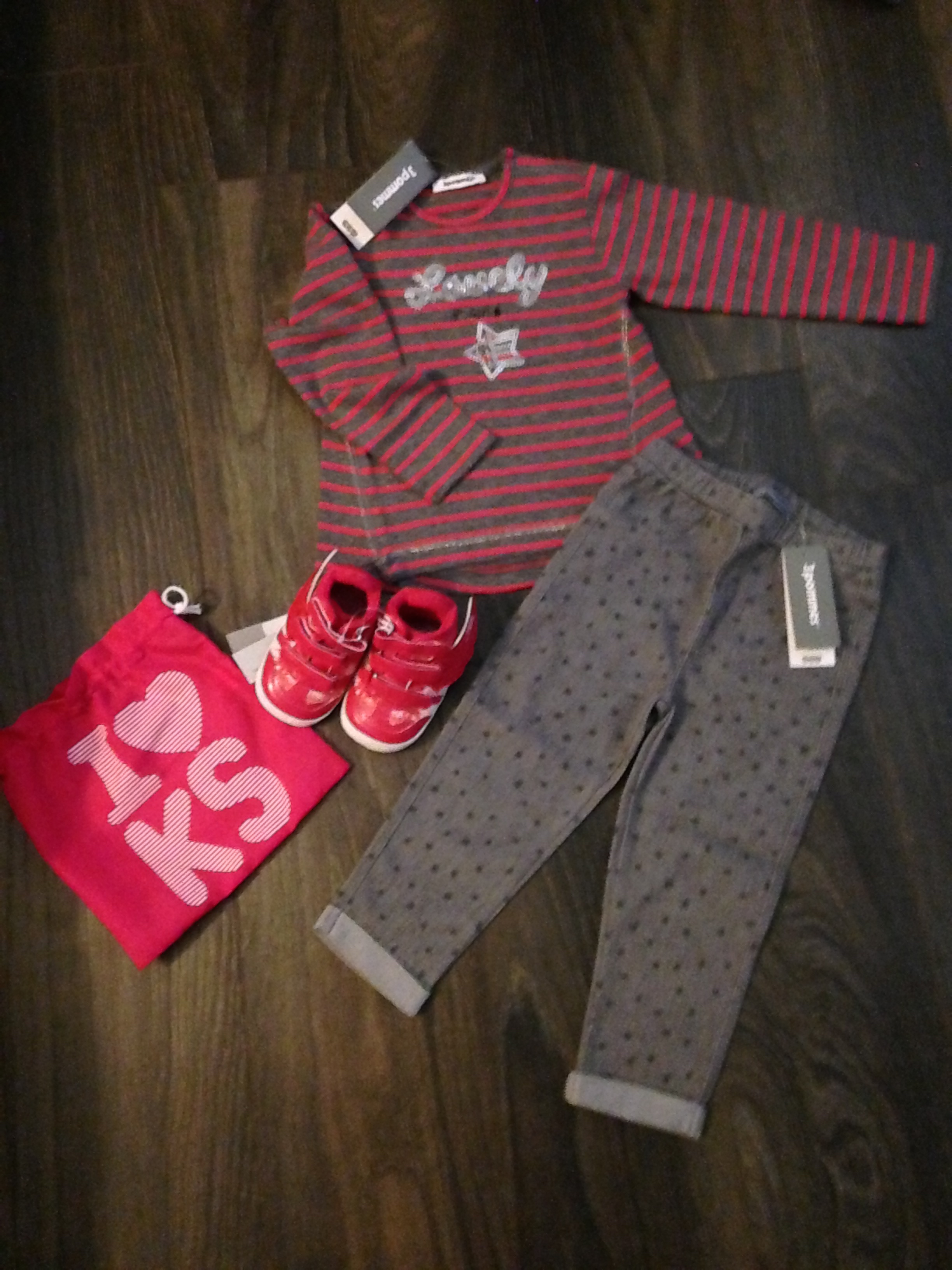 Et bah oui, le congé parental ça permet de faire des choix : privilégier la nourriture et les coloriages pour enfants aux razzia chez catimini etc et aux craquages jouets toutes les semaines (ça vous étonne ? Oui, je me soigne…) Mais tout de même, j’ai quand même gardé une part de budget « plaisir » de temps à autre… Et ça passe souvent par un petit ensemble de marque ou dans des magasins un peu plus haut de gamme.