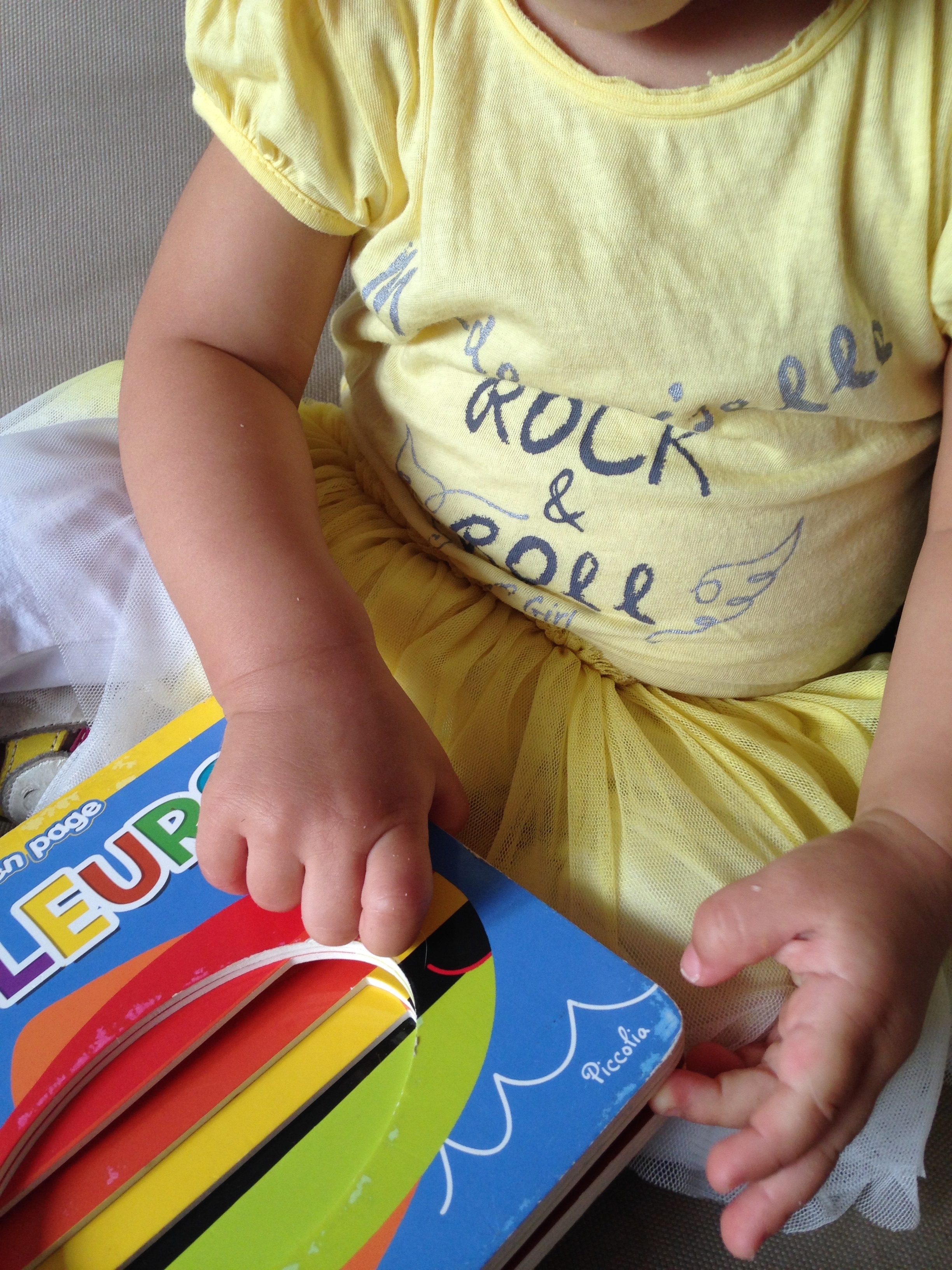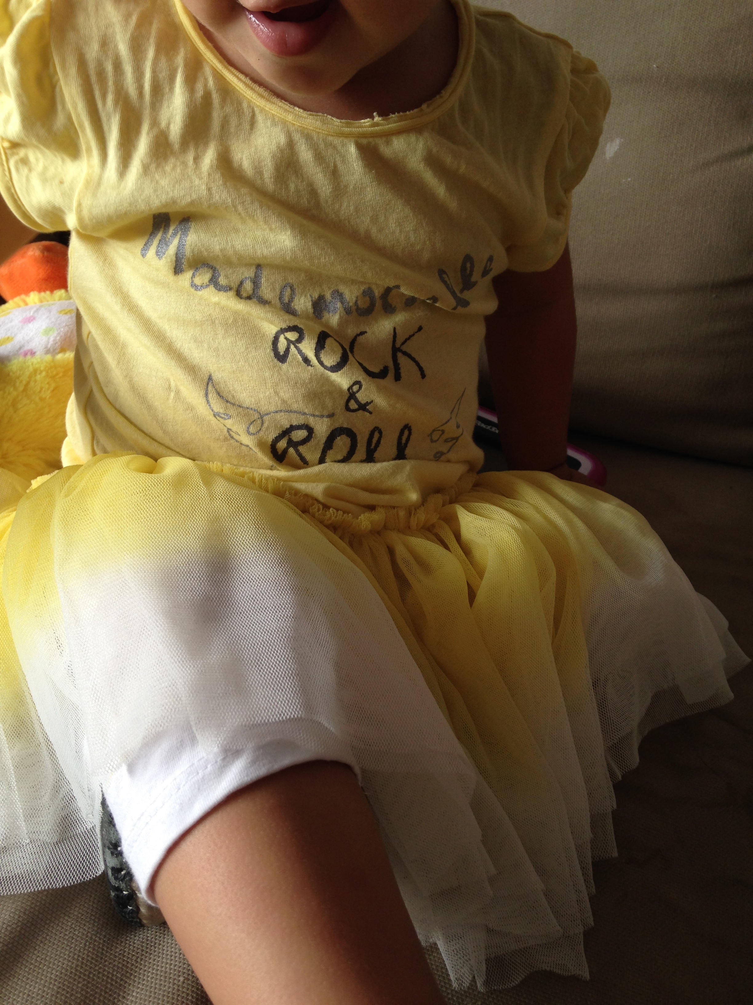 Miniloute portait d’ailleurs la robe tutu jaune « Mademoiselle Rock & roll » pour la rentrée de sa soeur… C’est encore un petit peu grand mais j’adore ! Elle mettra sans doute la rose pour les 4 ans au thème arc en ciel de Liloute.