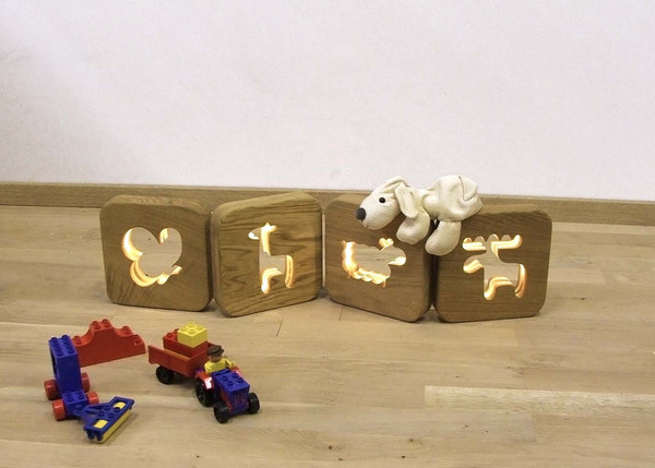 Quelques détails : les veilleuses sont en chêne massif et traitées avec une huile protectrice naturelle répondant aux normes jeux et jouets. Ce sont des veilleuses LED à brancher sur secteur, donc à faible consommation et longue durée de vie. Elles sont fabriquées en France, ne contiennent aucun produit toxique et sont certifiées CE (luminaires pour enfant)