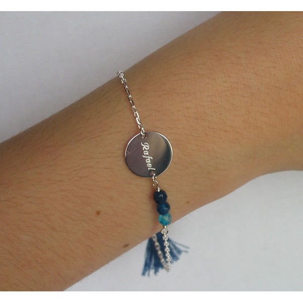 - Bracelet en argent Bahia à pierres bleues avec médaille, gravure comprise et plusieurs typos au choix: 30€