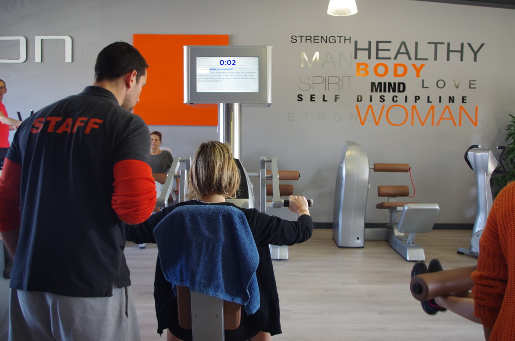 Comment ? Grâce à une carte qui contient toute les infos biométriques sur vous et votre parcours. Nous avons chacun eu la nôtre pour l’occasion et sommes passés devant une caméra pour être scannés et ainsi bénéficier d’un entraînement personnalisé sur le circuit Milon. Il suffit d’entrer la carte dans chaque appareil et la machine se règle… du sur mesure ! Les séances sur chaque appareil sont assez courtes mais intenses, on peut voir sur chaque atelier son objectif, son rythme et le temps qu’il nous reste à effectuer.