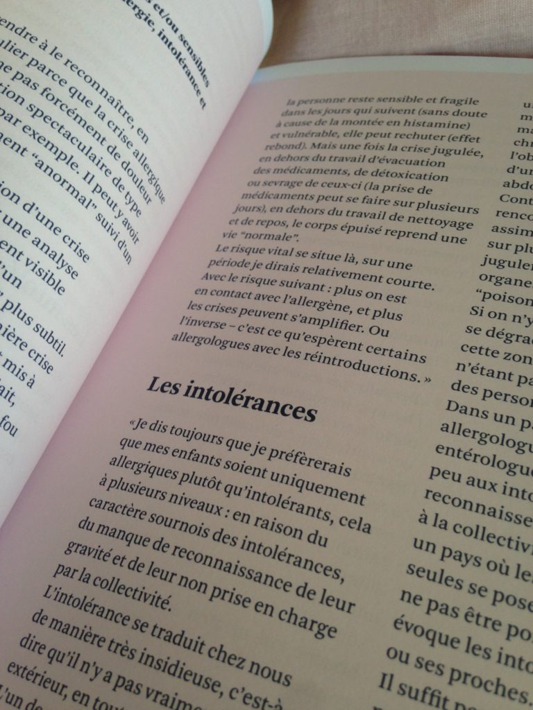 En tant que maman d’enfants intolérant et (ex)allergique, ce livre m’a à la fois informée et rassurée sur les allergies et intolérances alimentaires. Si c’est parfois un peu compliqué d’être pris au sérieux pas le corps médical, c’est réconfortant de lire des opinions et témoignages de personnes qui vivent les mêmes situations.