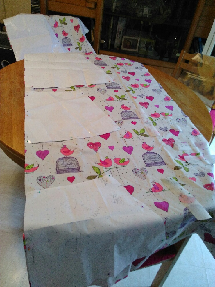 J’avais des inquiétudes au début sur le tissu : assez épais, les motifs étaient de plus plus gros que ce que j’avais imaginé… Craintes confirmées par ma maman, on aurait sûrement du passer un peu plus de temps sur notre choix et mieux regarder le descriptif sur le site.