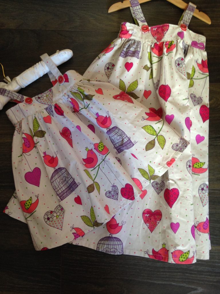 Quel plus beau cadeau que de jolis vêtements cousus par sa maman pour ses petits enfants ? Je trouve que c’est tout un symbole, quelque chose qui se perd sans doute… Je ne suis pas bonne couturière, je n’ai à vrai dire jamais essayé, surement parce que maman fait ça tellement mieux (facile hein ! Pratique d’avoir une mère dont c’est le métier et la passion…). Alors qu’elle ait confectionné deux jolies robes d’été pour les pioupioutes veut dire beaucoup ! Je pense que ça fait longtemps qu’elle voulait le faire, mais connaissant mes goûts difficiles la tâche s’avérait plutôt compliquée :p