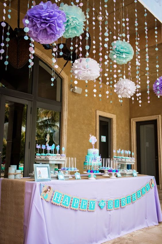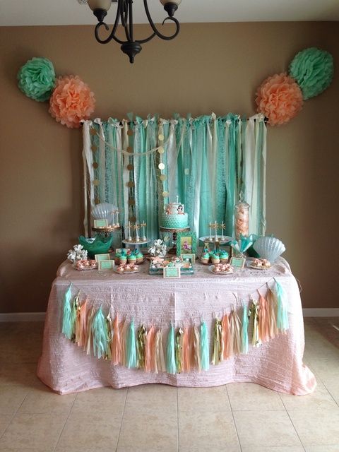 Donc, concrètement, un anniversaire La Petite Sirène, ça veut dire quoi ? J’aimerais partir sur des couleurs un peu pastel, un peu girly aussi : du vert turquoise/menthe, du rose/mauve, du corail, peut être une pointe de doré… Et le moins qu’on puisse dire c’est qu’internet regorge d’idées et que mon board Pinterest s’est rempli super vite !