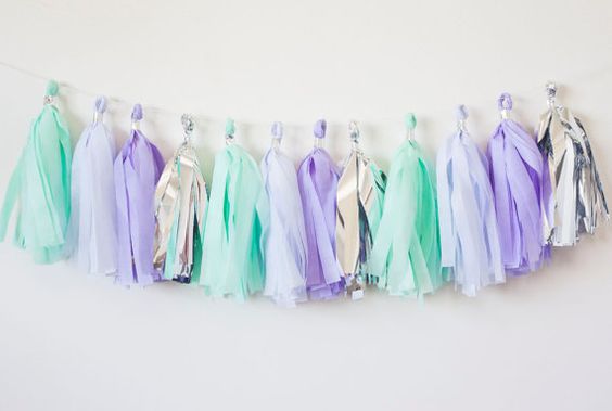 En ce qui concerne la sweet table, je voudrais encore une fois une base de blanc et tout miser sur les petites déco : des printables, une guirlande de tassels ou de tulle, des ballons… Et puis des bonbons aux couleurs du thème comme des chamallows, des tagadas violettes, des tagada pink ! Et évidemment des cupcakes et autres petites pâtisseries que je n’ai pas encore choisies.