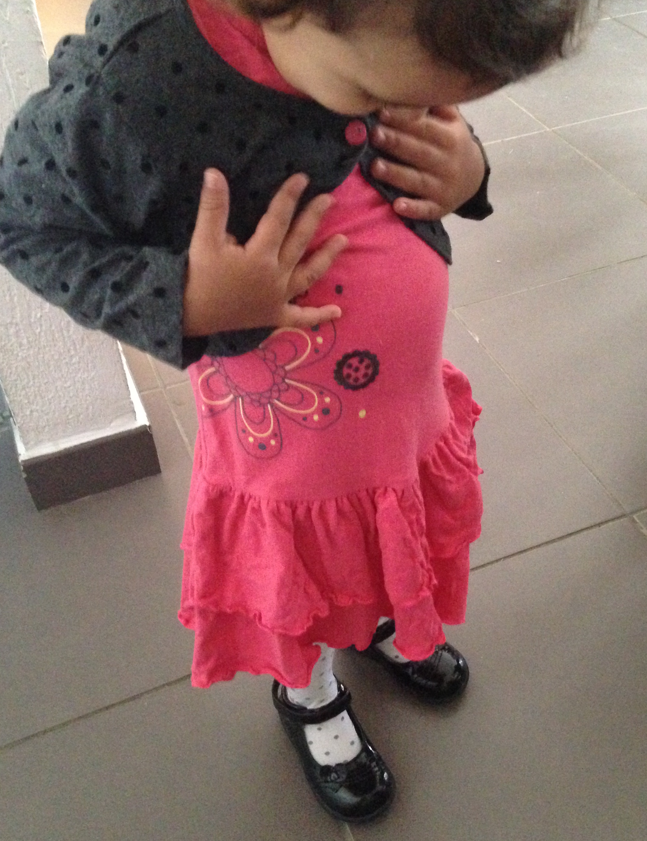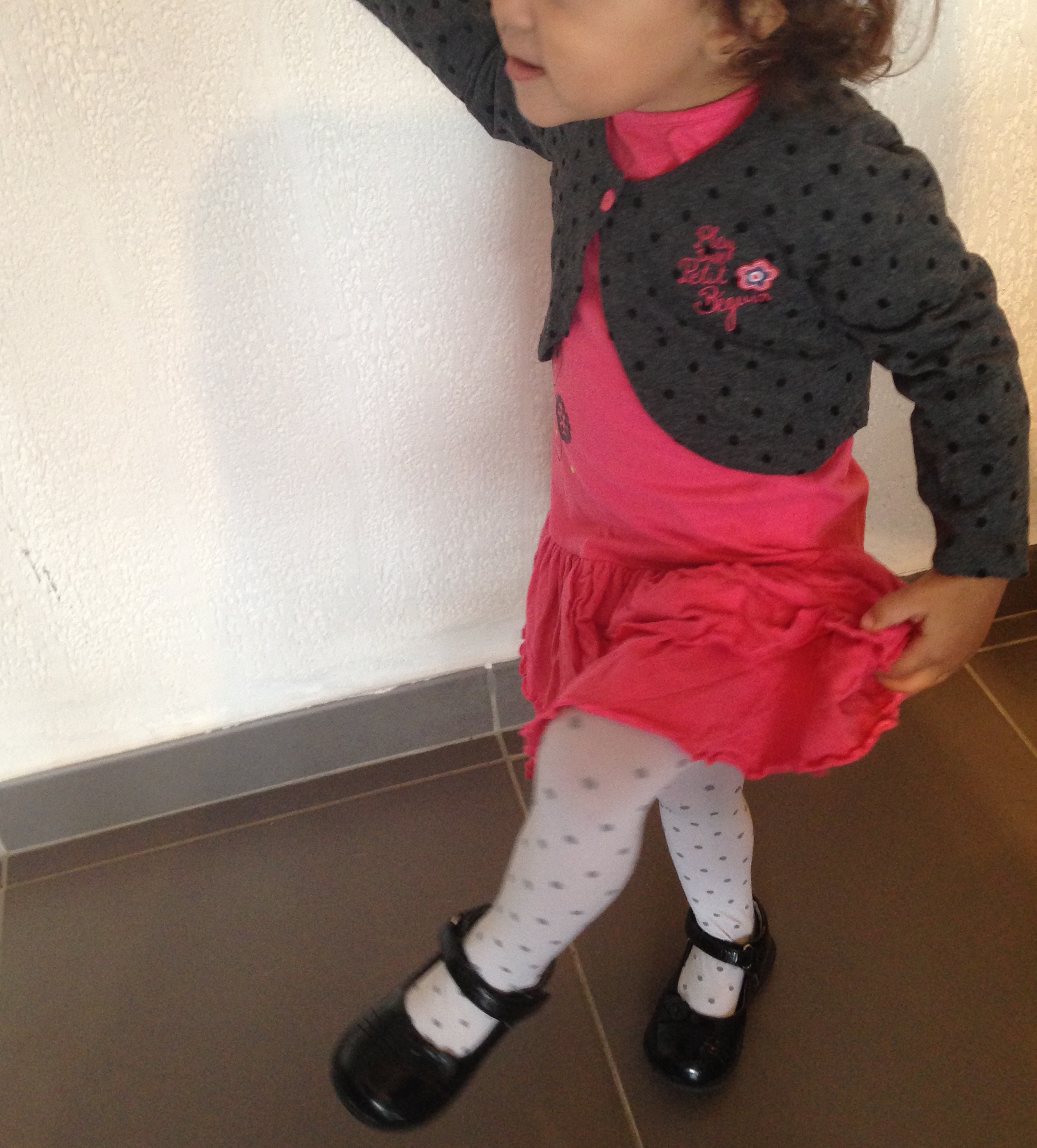 On a ajouté à cet ensemble des collants fins et des chaussures vernies récupérés de sa grande soeur (pratique ça !) et hop ! Voilà un look automnal tout mignon pour mon grand bébé.