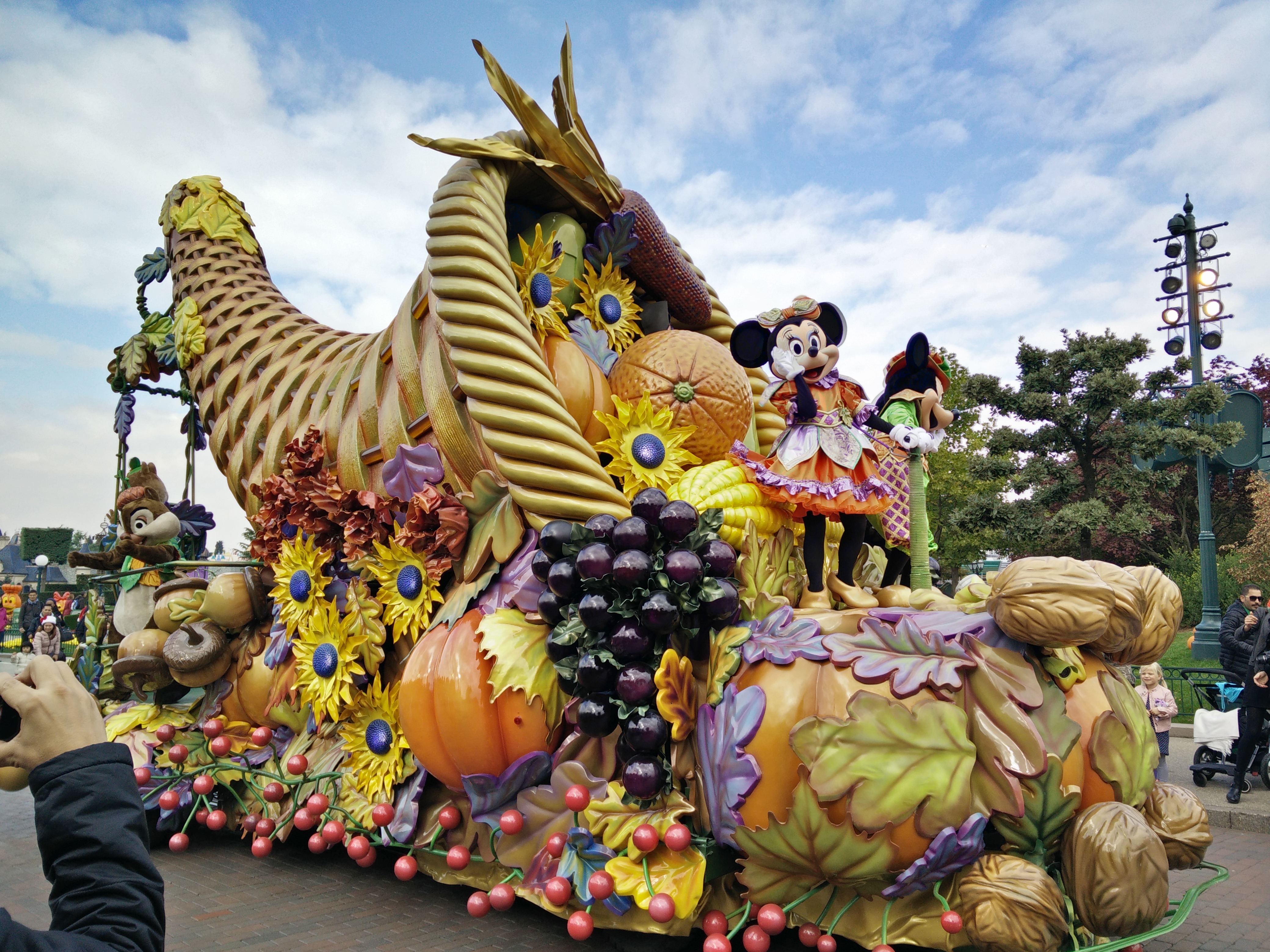 Le lendemain après midi nous avons assisté à la parade d’Halloween de Mickey et ses amis, plutôt sur le thème de la moisson, très sympa elle aussi. Plus courte que la parade classique avec beaucoup moins de monde : nous sommes arrivés 5 minutes avant et nous avons tout de même trouvé des places aux premières loges.