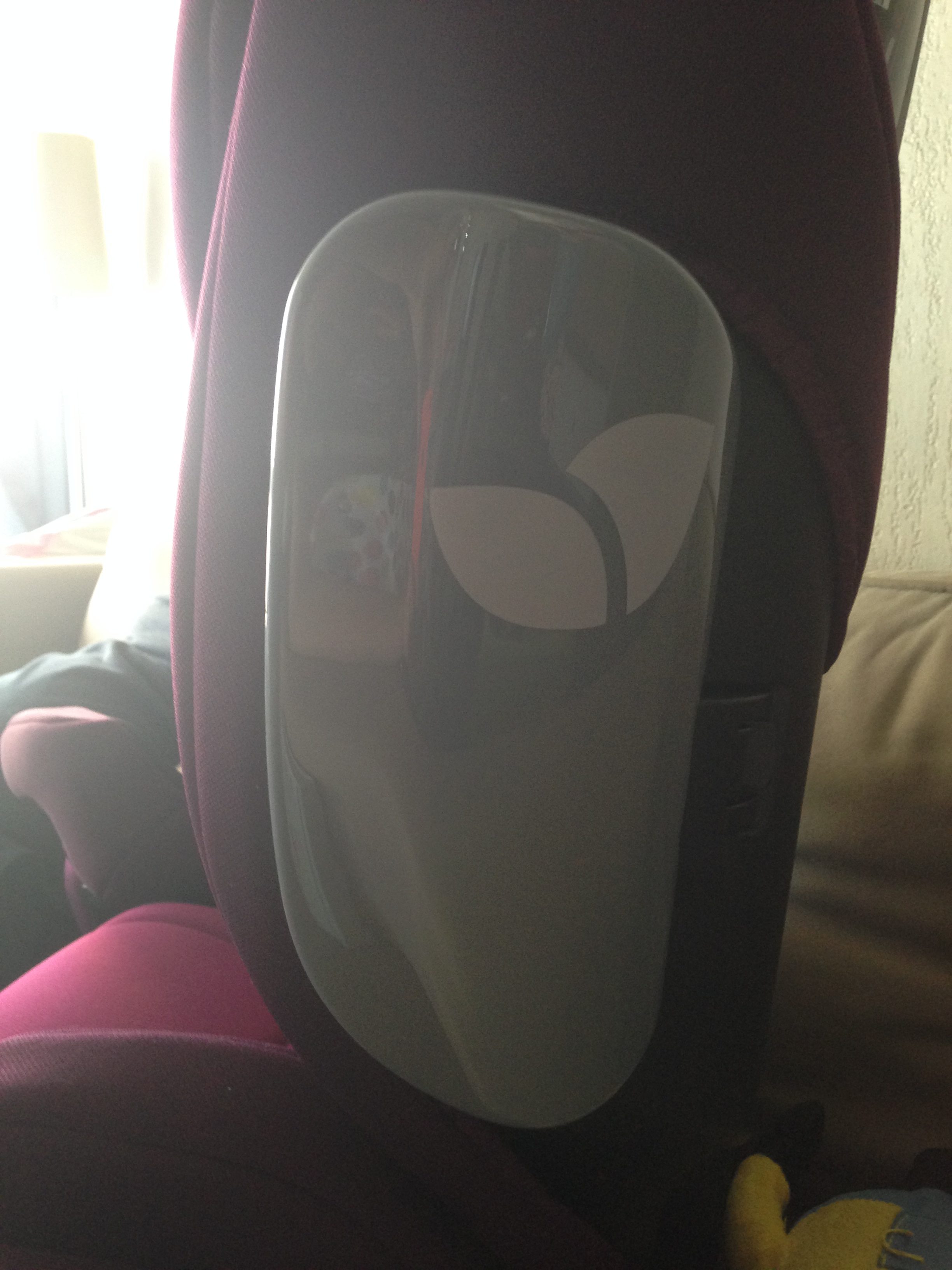 Tout plein de détails très sympas sur ce siège : en plus de la têtière qui se règle en hauteur pour suivre l’évolution de l’enfant, on trouve des petits compartiments dans la base du siège, pratiques pour y ranger des tétines/mouchoirs/petites voitures… J’ai été surprise par la taille du siège : moins haut au niveau de l’assise que le Pallas de ma grande, mais aussi moins large et moins profond. Et effectivement, en l’installant dans ma voiture, la différence est flagrante et le gain de place également.
