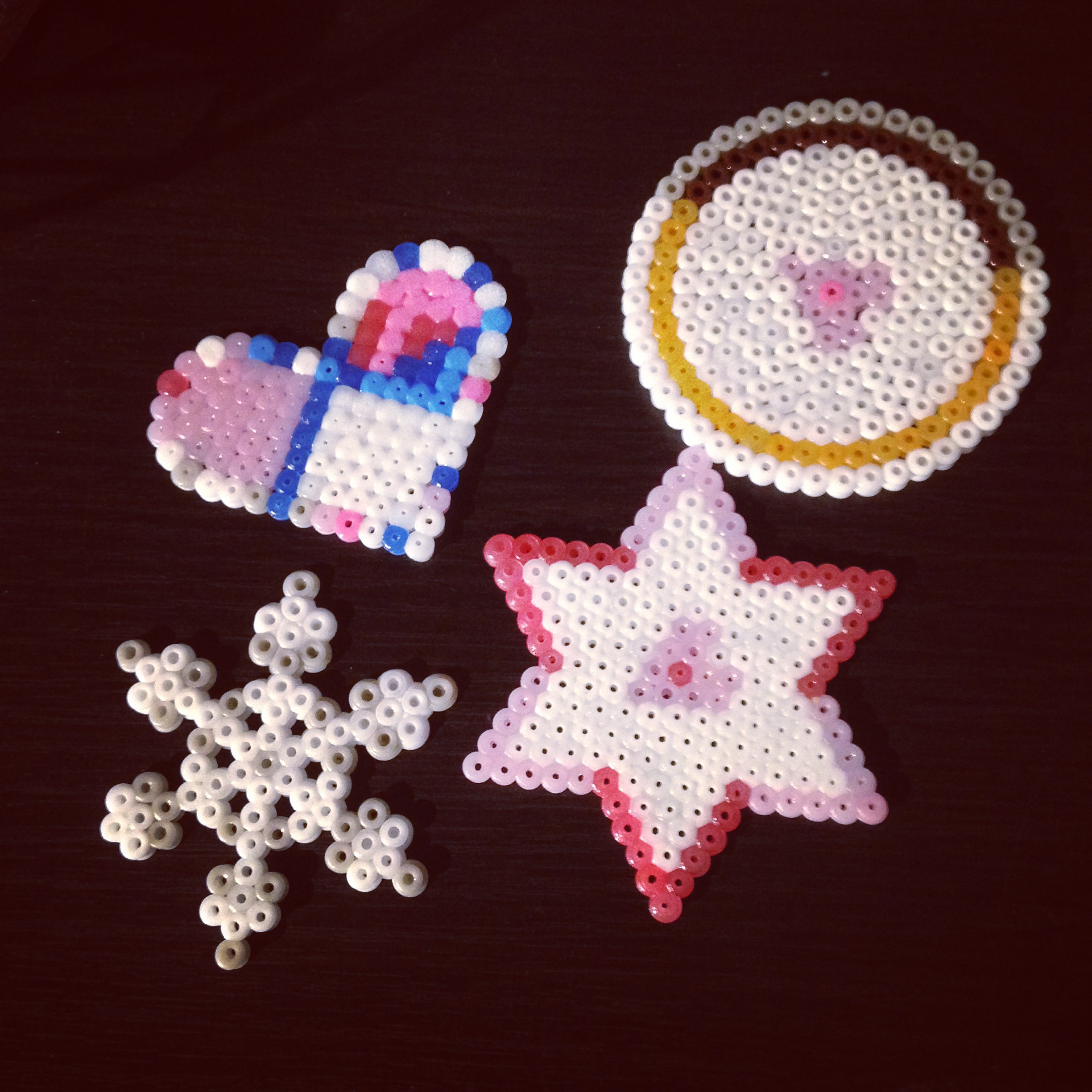En Octobre, pour ses 5 ans, ma grande a reçu (entre autres innombrables cadeaux) un kit de perles à repasser SES la Reine des Neiges. Après un essai plutôt mitigé, j’ai décidé de retenter le coup avec des perles d’une autre marque : la marque Hama, incontournable dans ce domaine. J’ai donc commandé un baril de 10000 perles, un sachet de perles couleur chair, ainsi que diverses plaques. Les plaques du kit SES la reine des neiges (une étoile, un rond, un petit carré, un coeur…) nous ont bien servi car elles sont compatibles.