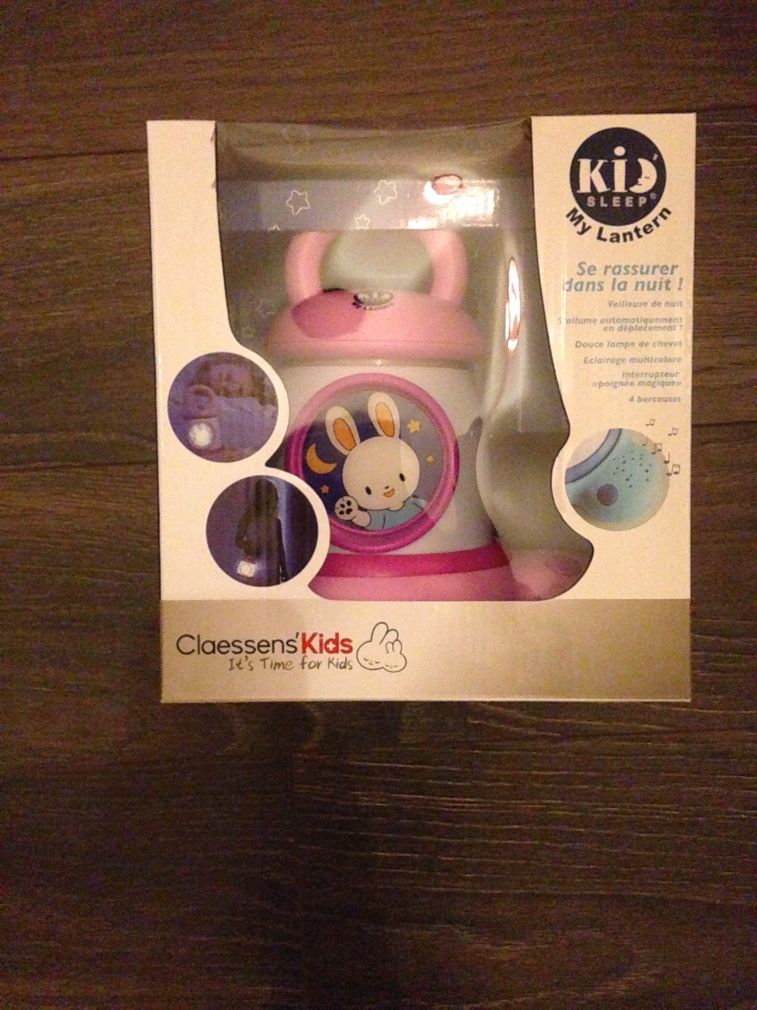 - Une veilleuse Kid Sleep My lantern de Claessens’Kids en rose pour 37€90 : ça c’était LE produit que j’attendais ! Liloute a déjà un réveil de la marque mais la veilleuse n’éclaire pas assez fort (et surtout, on n’a toujours pas compris comment régler le réveil et l’heure jour/nuit). Comme sa veilleuse Barbapapa a rendu l’âme et que sa soeur ne prête pas la sienne, elle voulait sa propre veilleuse, pour mettre sur sa table de nuit ou son lit. Elle a choisi le modèle elle même et j’avoue que j’en suis vraiment ravie : on l’a branchée dès la réception et le soir même elle dormait avec ! Depuis, tous les soirs elle la règle en fonction de la lumière désirée (lumière blanche plus ou moins forte, lumière de couleur changeante ou non…) et met en route la petite berceuse sur le socle (qui ne dure que 3 minutes, dommage…). Je crois que ce produit est le coup de coeur de ma commande, robuste, léger, pratique (éclaire même sur sa base, et tient toute la nuit hors de celle ci!). Ma grande est conquise et moi aussi.