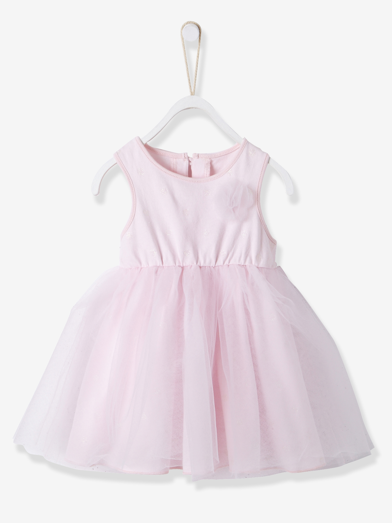 Pour Miniloute j’ai voulu me faire plaisir avec une jolie robe en satin et en tulle, décolleté dos et joli noeud ! A compléter avec un bandeau fleuri au rayon bébé 😉