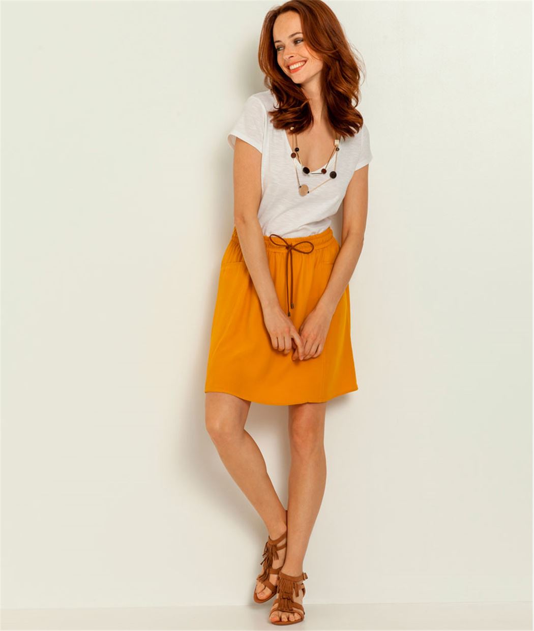 - Un t-shirt corail vif avec détail macramé dispo ici