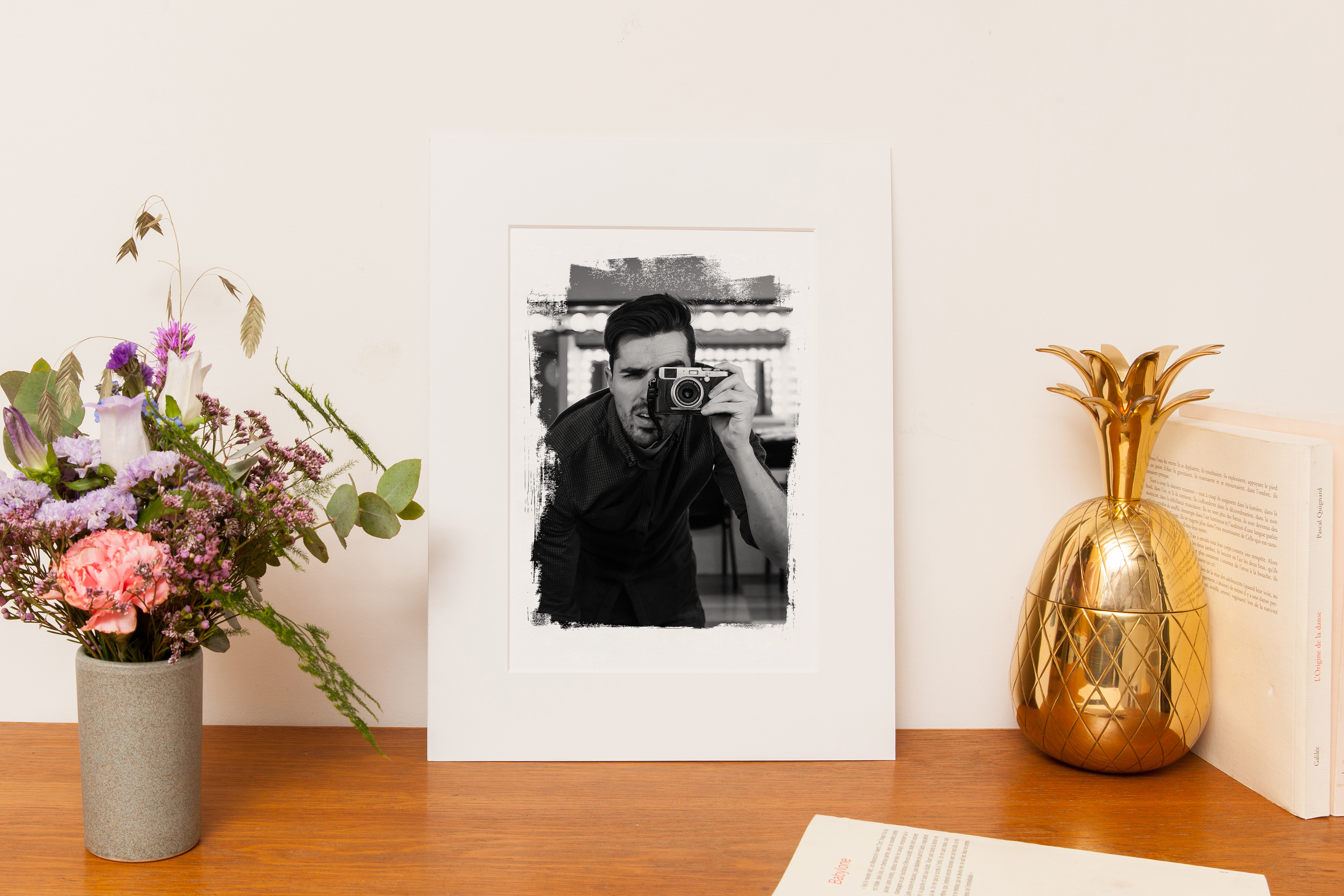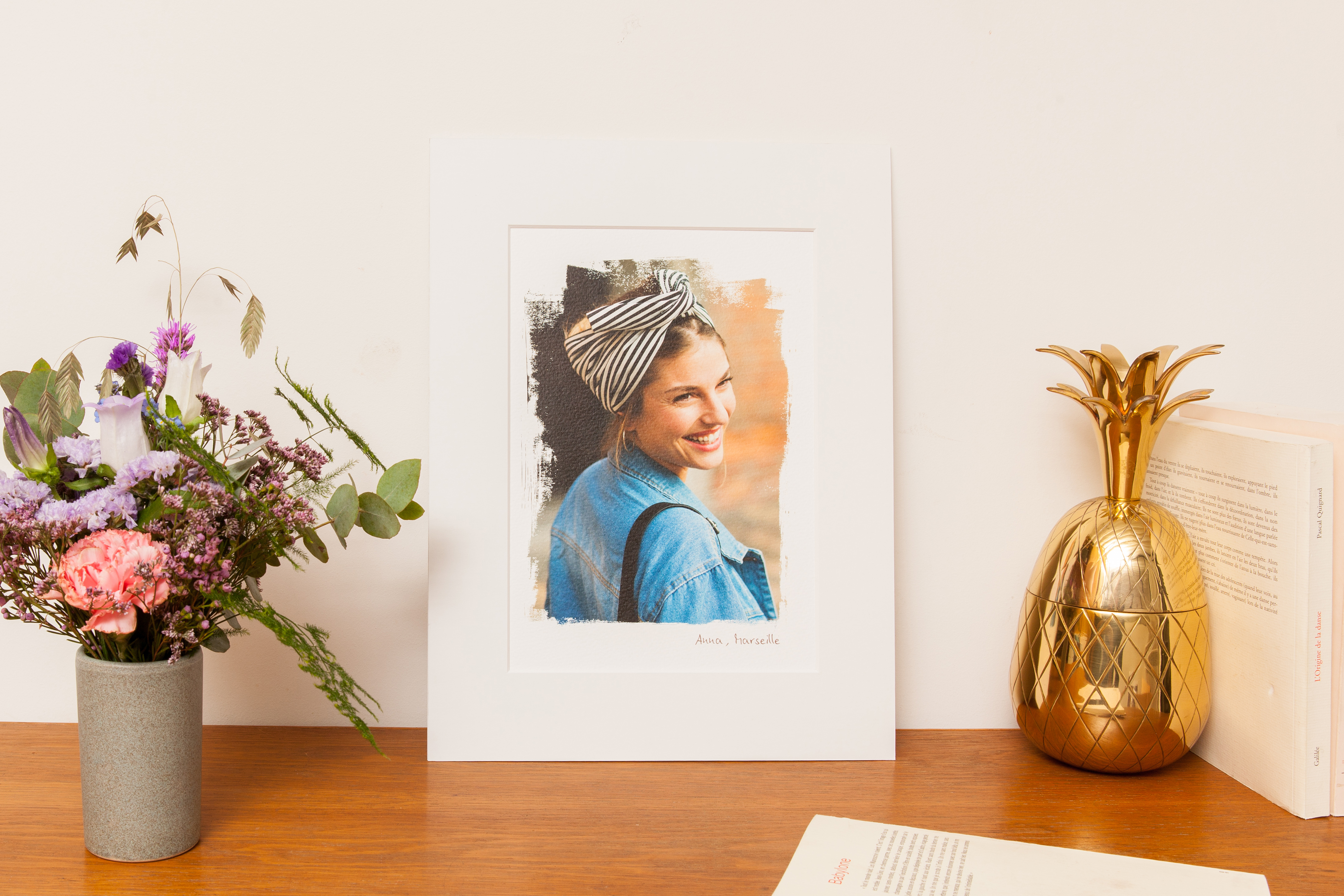 Le produit en question est l’affiche « Photo d’Art » : un agrandissement d’une de votre photo sur papier pristine texturé pour un rendu artistique, des contours façon « coups de pinceau » que je trouve très réussis, la possibilité d’ajouter un texte et un cadre en bois naturel. Deux formats pour cette affiche : 30×40 (celui que nous avons) et 45×60.