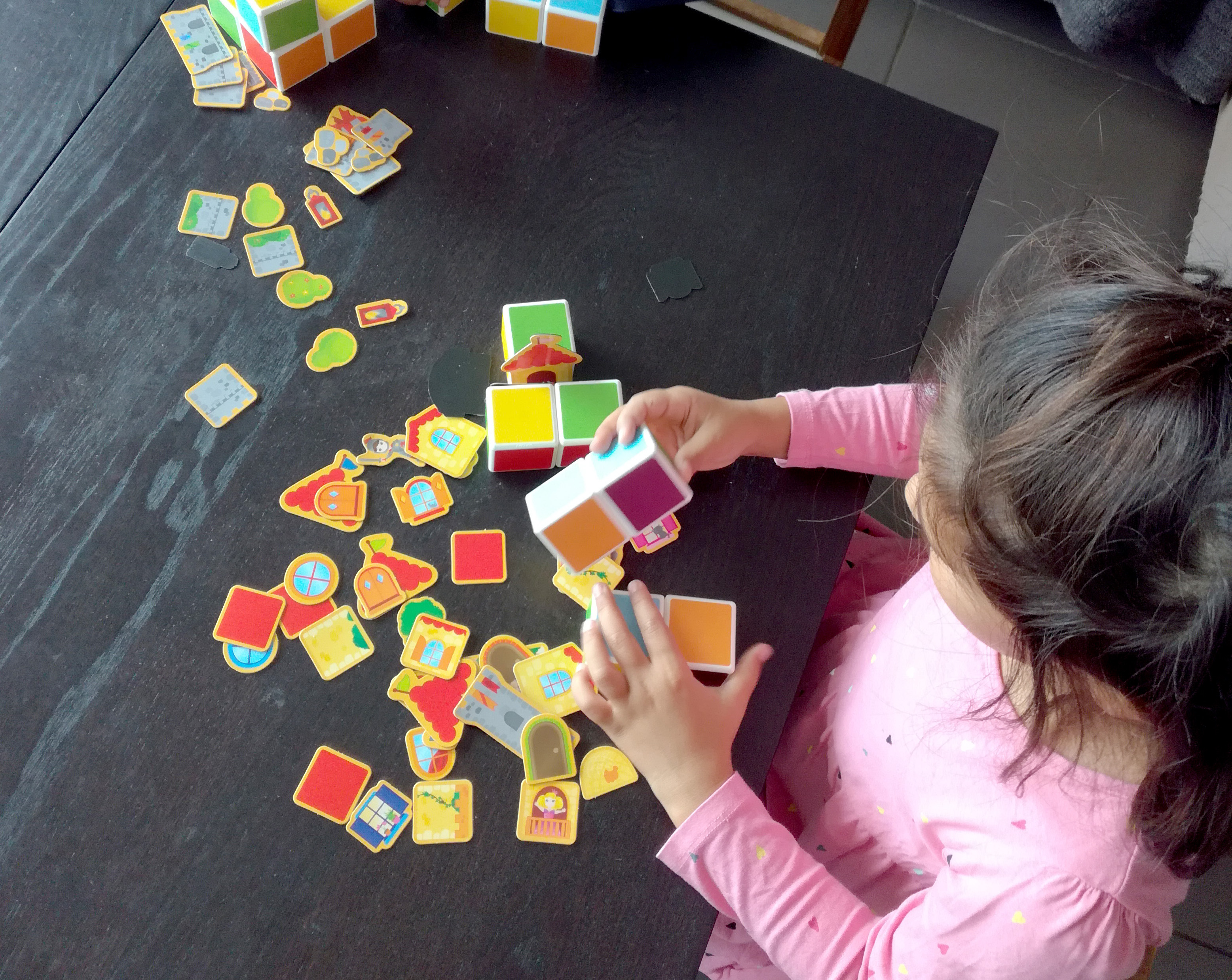 Les Magic Clips tiennent bien, juste ce qu’il faut pour pouvoir les placer, déplacer, enlever et remettre sans problème. Les cubes eux tiennent beaucoup plus, ce qui permet de faire des constructions solides ! J’aime aussi le côté multicolore (une couleur par face) des cubes qui rend le jeu encore plus ludique.