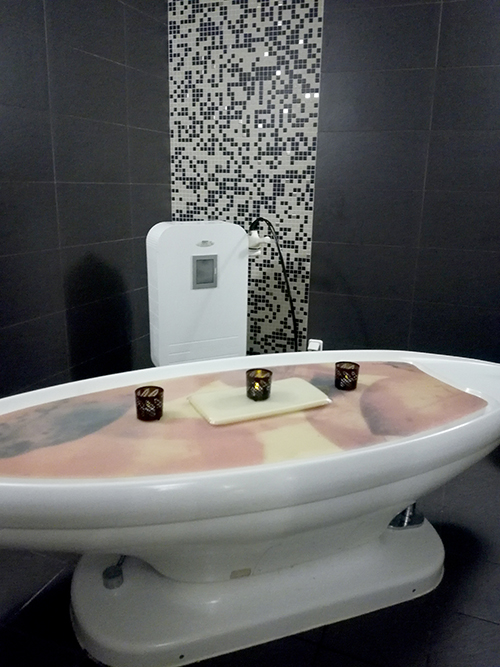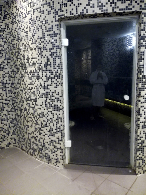 J’avoue que j’avais hâte de passer dans l’espace Orient parce que je suis fan des hammams ! En plus d’un hammam oriental en rond, on y trouve aussi une banquette chauffante, une douche et une salle dédiée au gommage au savon noir.