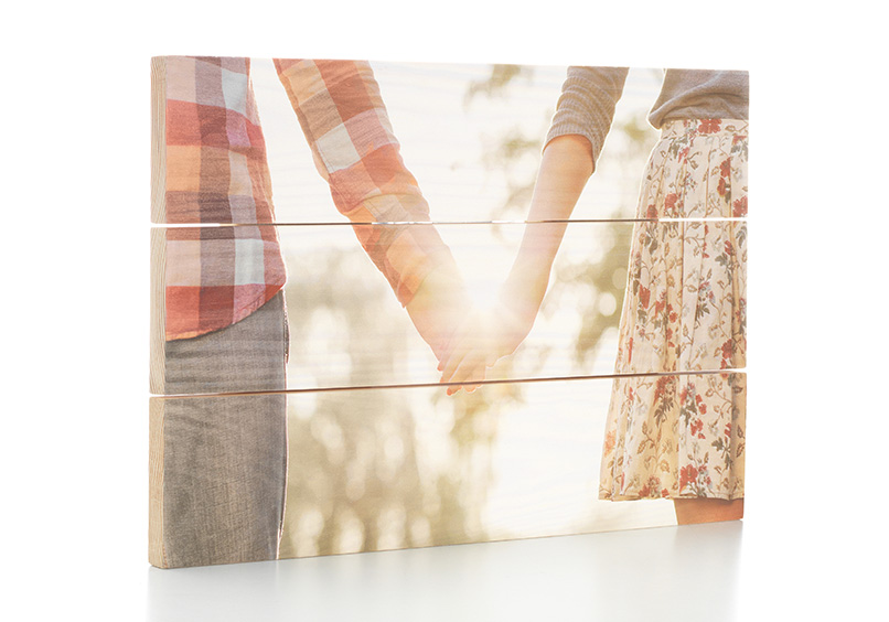 - Une toile photo : ma préférence va à l’impression sur bois que je trouve tendance et originale. A shopper sur Cewe à partir de 29€99.
